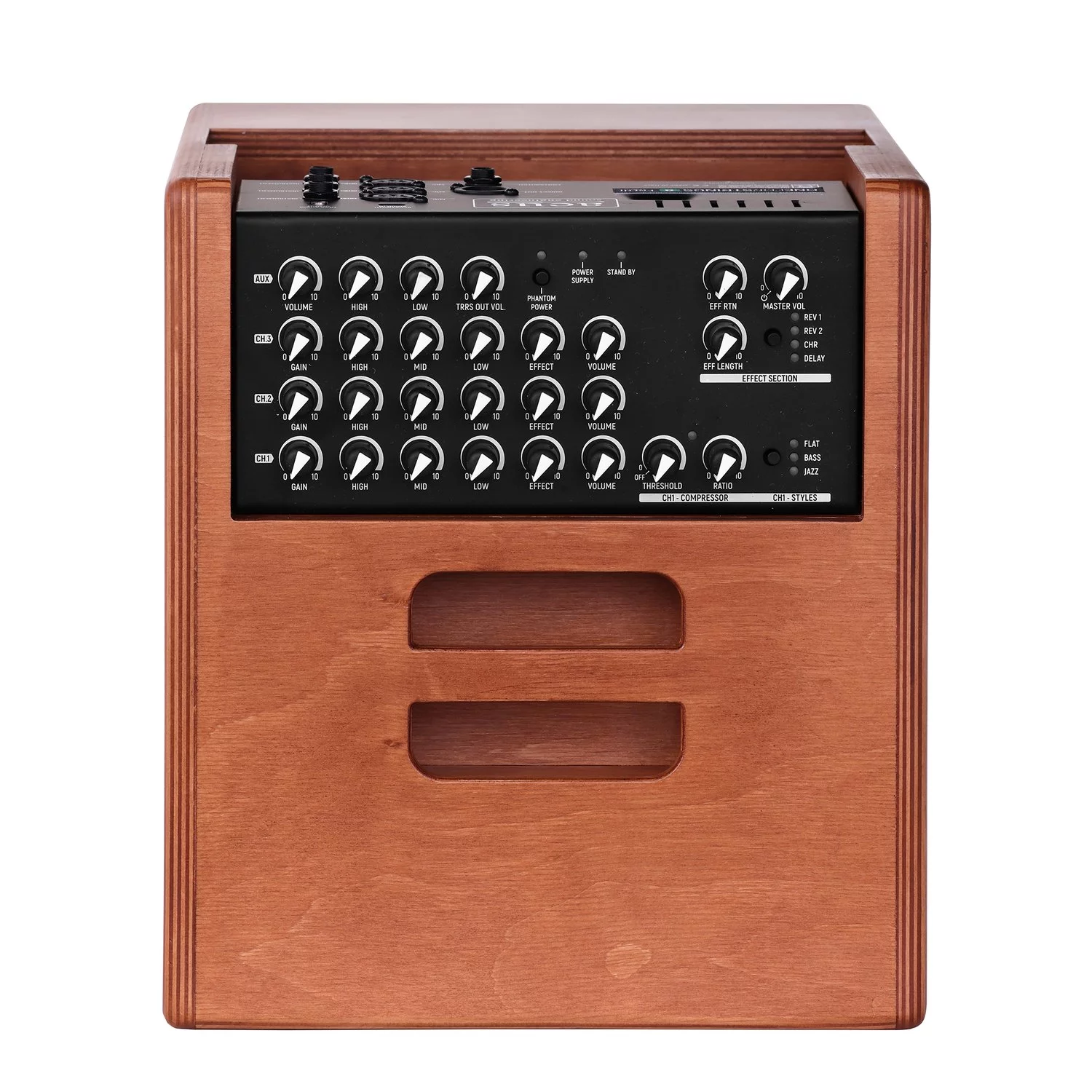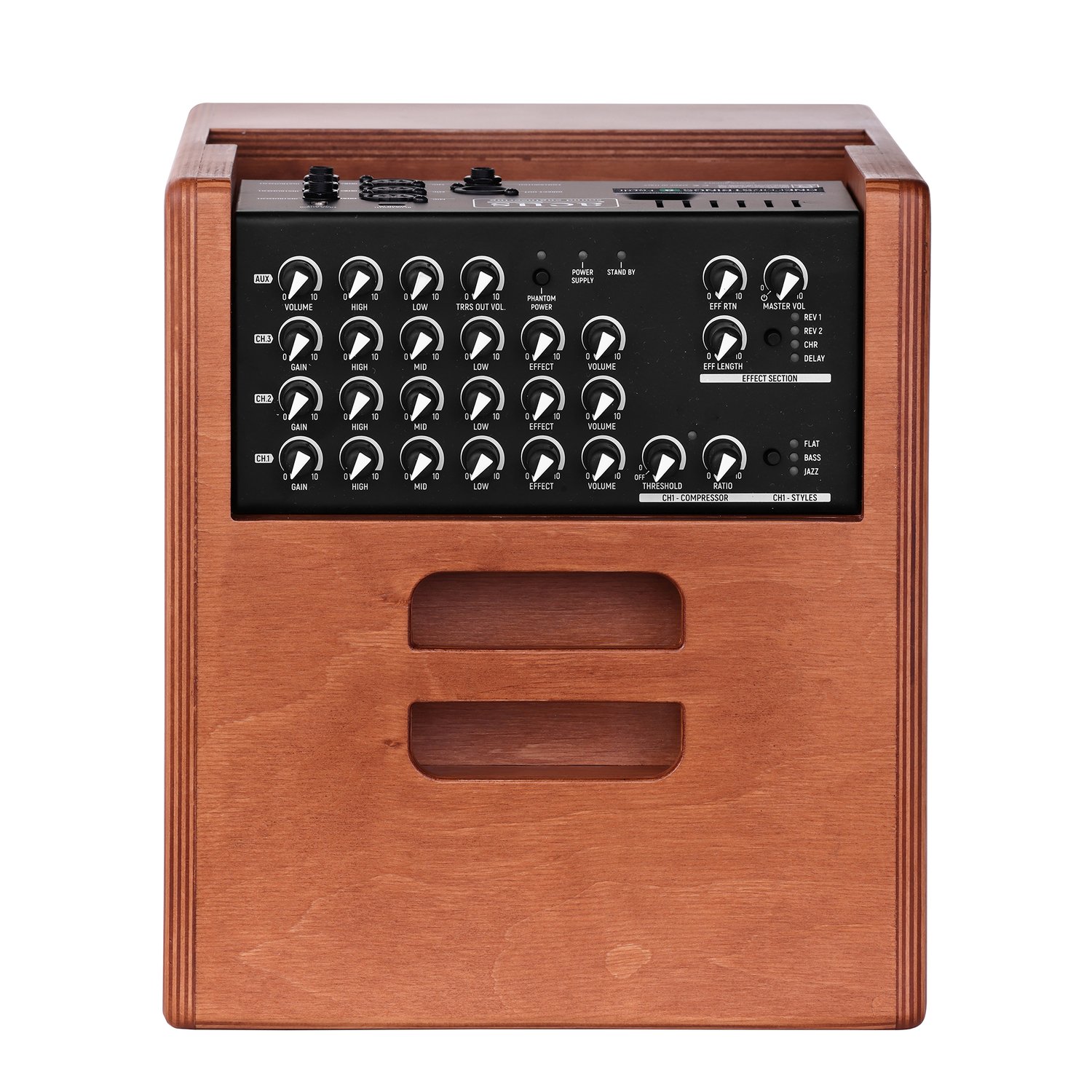 One ForStrings 8 Ferdi - 1х8” 140Вт комбоусилитель с тремя независимыми каналами, каждый из которых можно использовать как инструментальный или микрофонный. (Фантомное питание включается/выключается глобально на всех микрофонных входах.). Все каналы имеют независимые настройки гейна, громкости, уровня эффекта и 3-полосный эквалайзер. Дополнительно к этому Канал 1 имеет встроенный компрессор с регулировкой порога и степени компрессии, а также переключатель характеристики эквалайзера: