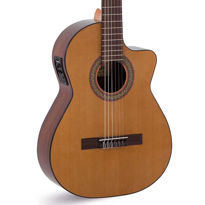 Электроакустическая классическая гитара с вырезом, размер 4/4, верхняя дека - массив кедра, нижняя дека - красное дерево, обечайка - красное дерево, гриф - красное дерево, накладка - палисандр, электроника - Fishman Classica III, ц