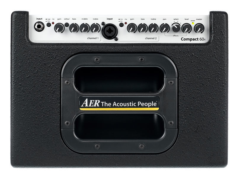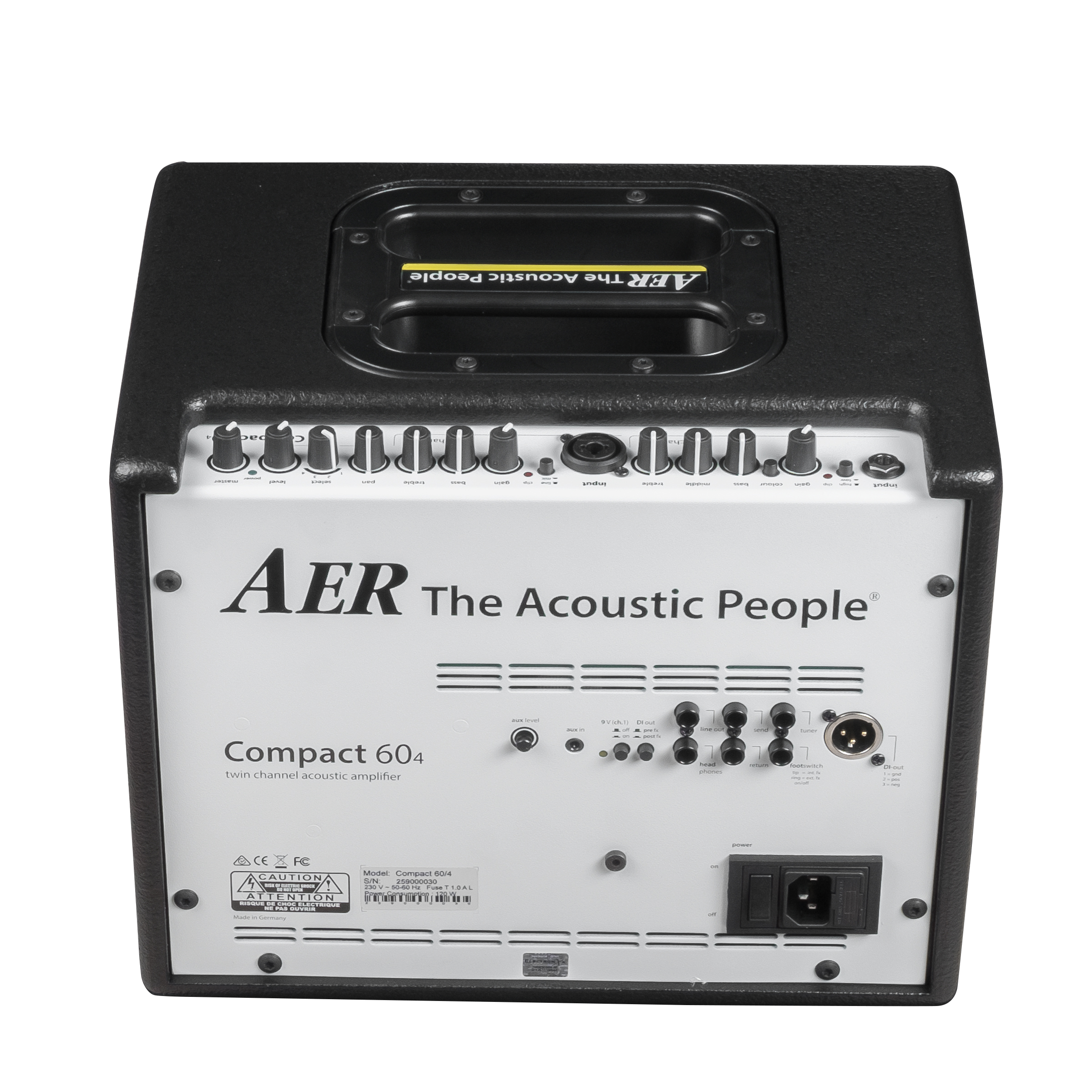 Модель 2018 года, AER Compact 60-4 имеет два независимых канала: Ch 1 - 6,3mm (1/4) Jack - линейный вход с высоким сопротивлением, подавлением сигнала "PAD", регулировкой уровния сигнала и переключателем фантомного питания 9V. Ch 2 - комбинированный XLR/6,3mm (1/4) Jack - высококачественный линейный или сбалансированный микрофонный вход с фантомным питанием 48V/9V и регулировкой уровня сигнала;