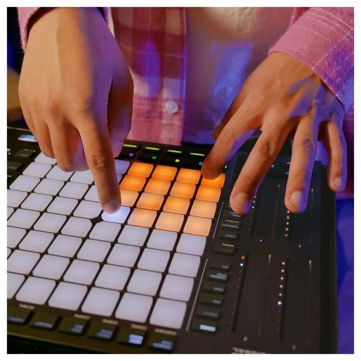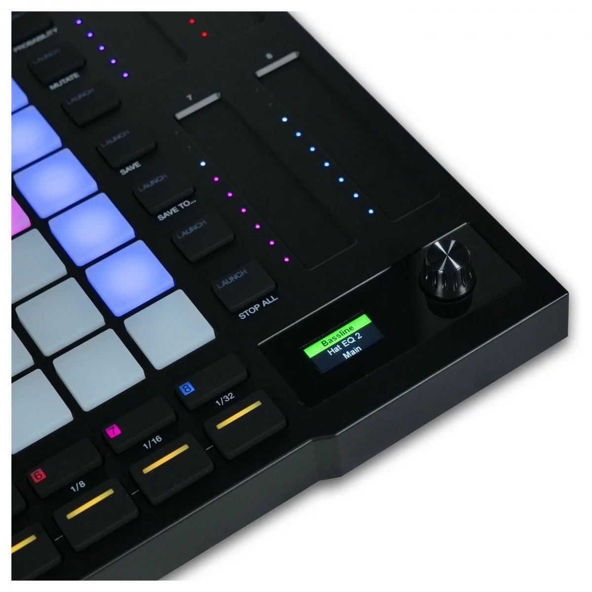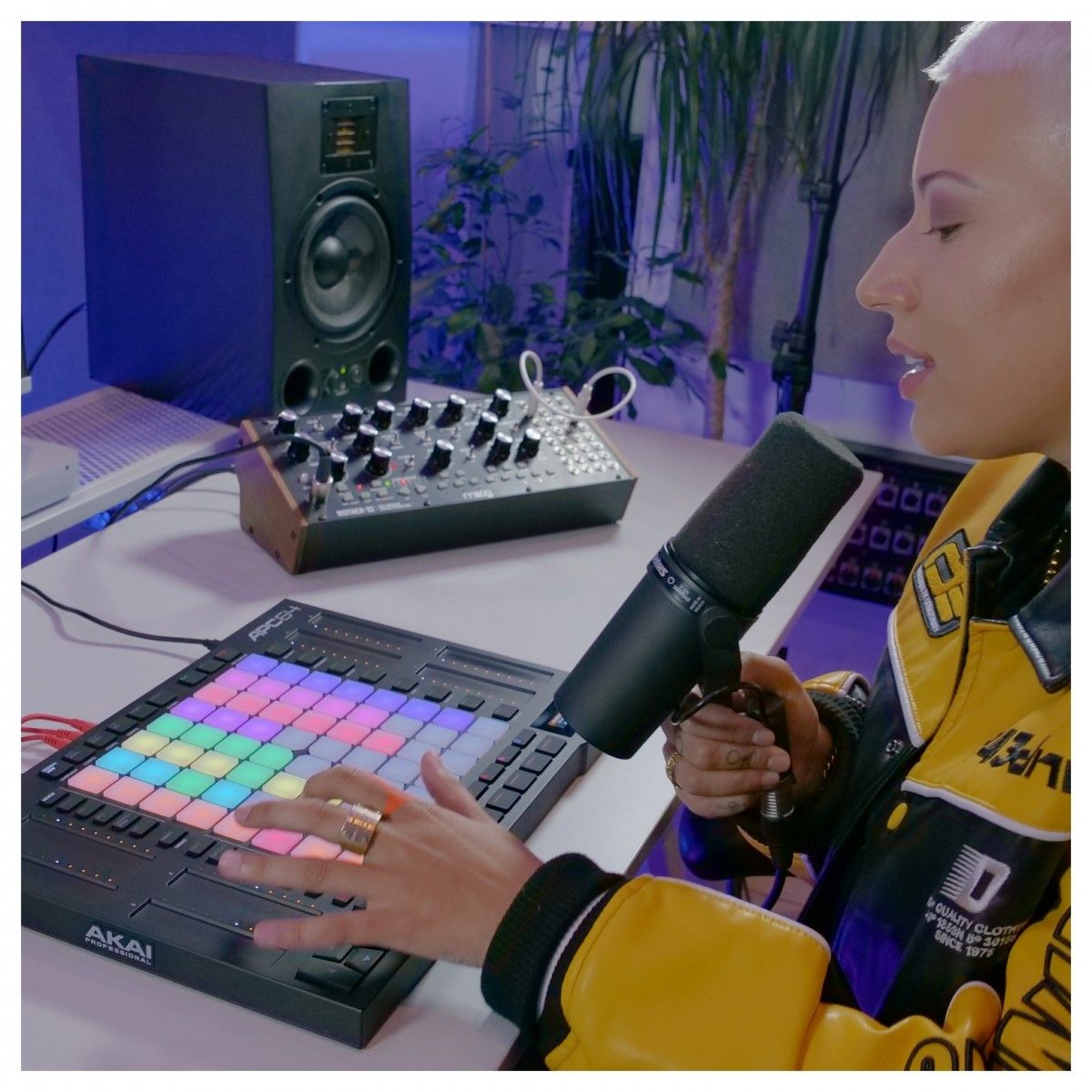 AKAI APC64 — контроллер для студийной и концертной работы с Ableton Live. Может использоваться как единый студийный хаб, который позволит управлять внешними синтами, драм-машинами и модульным оборудованием. APC64 работает как автономный 32-шаговый секвенсор на 8 каналов. Для внешнего оборудования выделено 3 MIDI-порта и 8 выходов CV/Gate. Для игры и запуска событий на передней панели находится сетка из 64 пэдов с чувствительностью к velocity, aftertouch и интерактивной подсветкой, а также 8 назначаемых сенсорных лент, которые можно использовать для управления высотой тона, модуляцией, фильтрами и прочими средствами обработки. Параметры сессии проекта отображаются на LED-дисплее в реальном времени. Предусмотрена транспортная панель, а также кнопки соло/мьютирования.