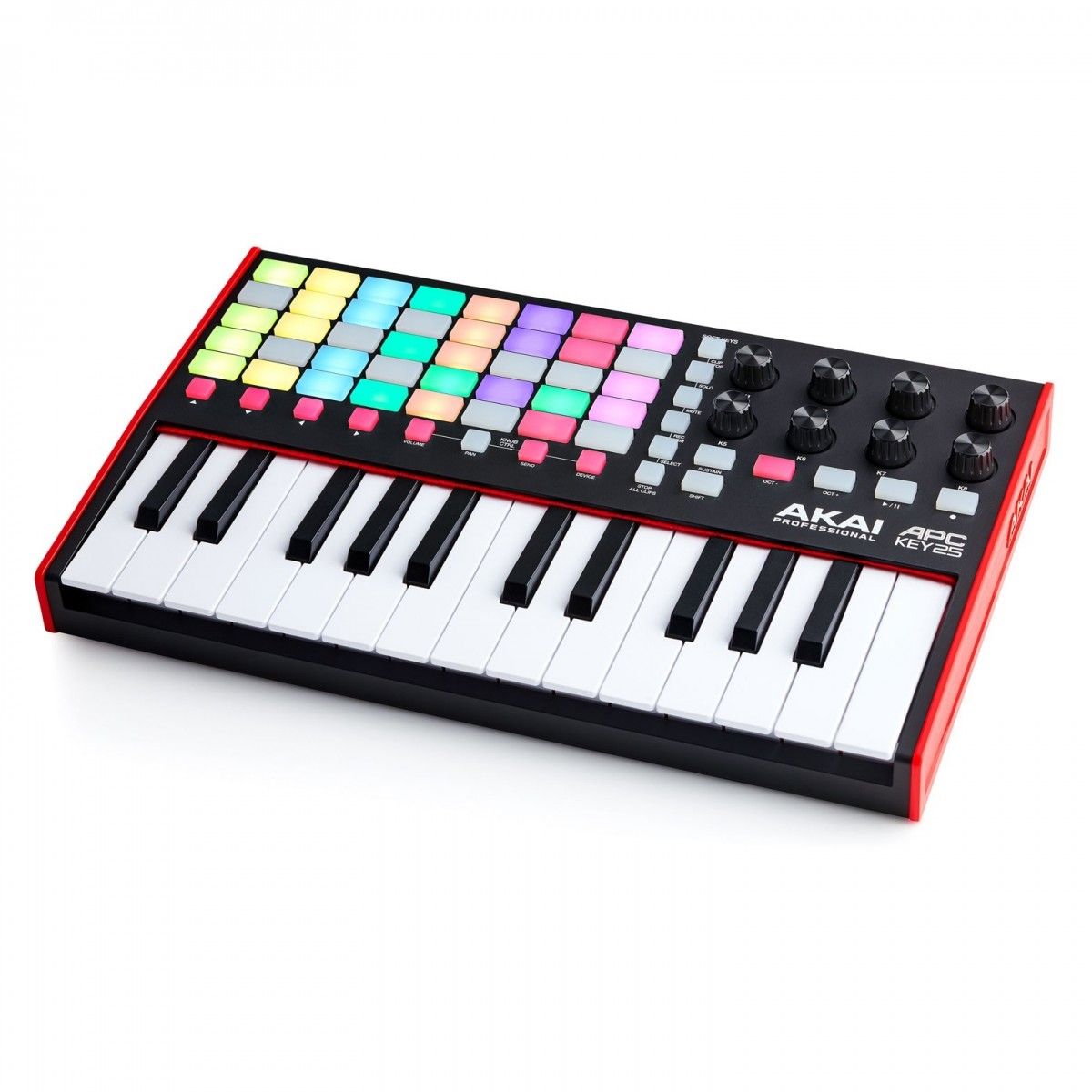 MIDI-контроллер для Ableton Akai Professional APC Key 25 MKII сочетает в себе мощность и универсальность MIDI-контроллеров Akai с глубокой интеграцией с Ableton (рабочей станцией цифрового аудио). Созданный на основе конструкции предыдущих контроллеров APC Key, MKII оснащен матрицей пэдов 5x8 с 40 новыми пэдами с яркой цветной подсветкой, которые представляют собой клипы режима Session в Ableton Live.