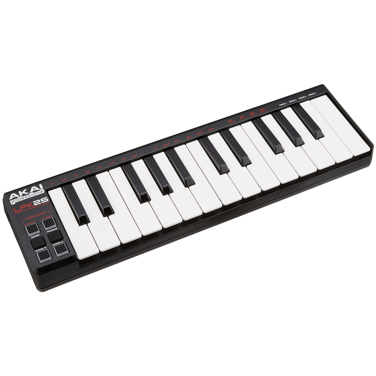 Akai LPK25 Laptop Performance Keyboard – это контроллер USB-MIDI для музыкантов, продюсеров, ди-джеев и других создателей музыки. Ширина клавиатуры 33 сантиметра, а вес меньше половины килограмма, так что она легко влезет в чехол вашего ноутбука, в рюкзак или «почтальонскую» сумку, что делает ее невероятно портативной.