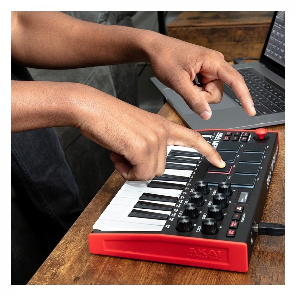 Теперь компактная клавиатура Akai Professional MPK mini может похвастаться бесконечными ручками, дисплеем, отображающем параметры, легендарными пэдами МРС и новой улучшенной клавиатурой.