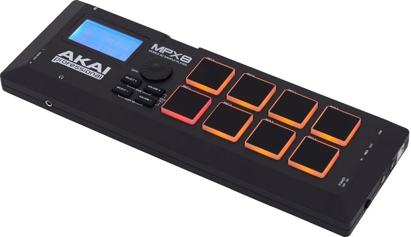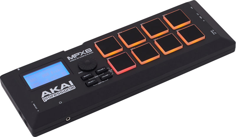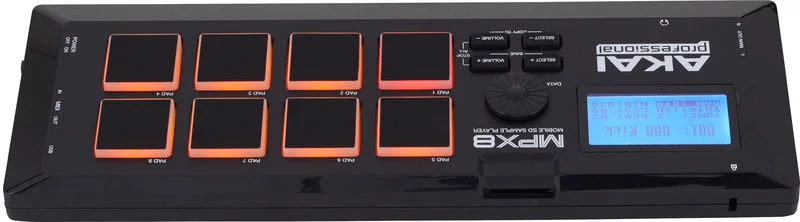 На сегодняшний день, Akai Pro MPX8 имеет статус одного из самых инновационных инструментов. При помощи обыкновенной SD-карты пользователь способен загрузить в проигрыватель практически любой сэмпл, далее назначив готовый сэмпл на любой из восьми имеющихся подсвеченных пэдов, чувствительных к скорости нажатия. В память Akai Pro MPX8 предварительно прописана обширная библиотека стандартных сэмплов, подходящих для живой концертной игры, шоу или студийной работы. В концертных условиях затемненной сцены комфортную работу обеспечивает его яркий дисплей, имеющий интуитивно понятный интерфейс и синюю подстветку. Помимо дисплея на корпусе расположены порты MIDI и USB MIDI, пара симметричных выход в 1/4 дюйма, один выход на наушники 1/8 дюймов.