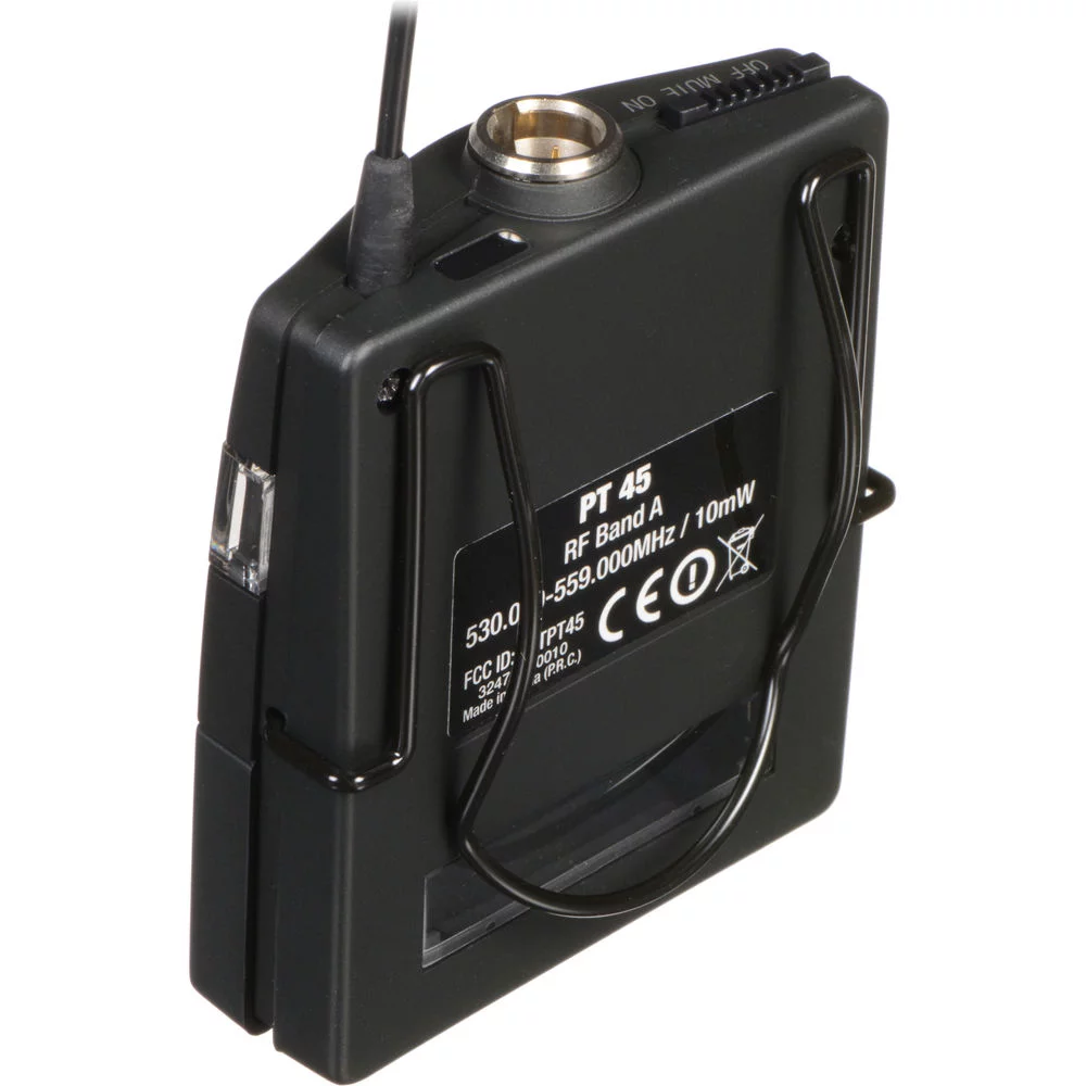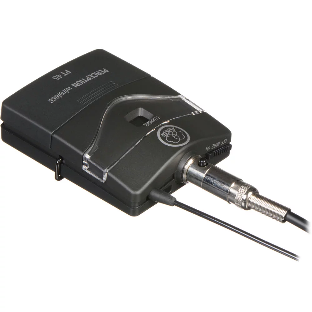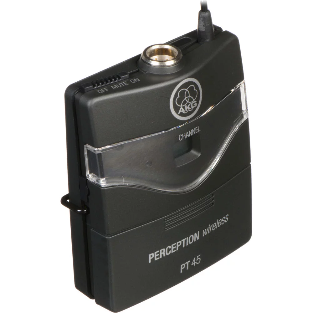 Радиосистема состоит из портативного поясного передатчика PT45 (Pocket transmitter) и приемника. Портативный карманный передатчик имеет на входе L-разъем, поэтому к нему подходят любые миниатюрные микрофоны AKG, снабженные L-разъемом. Кроме того, в комплекте есть кабель Jack - L-коннектор, так, что система подходит для подключения электромузыкальных инструментов, таких, как электрогитара и других, с разъемом Jack .