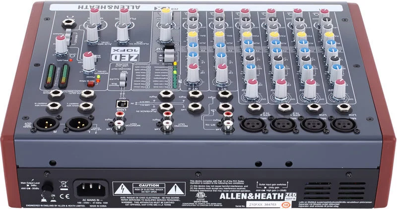 ZED10 FX- компактный микшер со встроенным USB-интерфейсом. Ультра портативная конструкция позволяет использовать его для записи в реальном времени или в студии. Настраиваемый USB вход/выход облегчает процесс записи. Гитары можно подключить непосредственно к микшеру, используя специально разработанные входы высокого импеданса, также микшер имеет два стерео входа для MP3 / CD плееров или клавиш и оборудован профессиональными XLR стерео выходами и гибкой секции мониторинга с наушников.