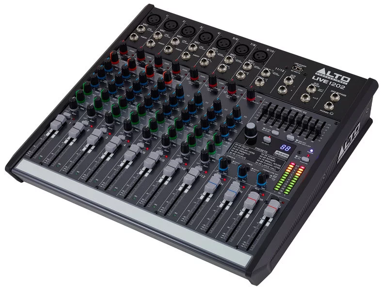 Известный итальянская компания Alto, представляет компактный концертный микшер Alto Live 1202. Пассивный микшер предлагает оптимальное количество каналов и интегрированный профессиональный эффект-процессор от компании Alesis. Четыре моновхода микшера оснащены независимыми динамическими компрессорами с индивидуальными ручками настройки уровня компрессии. Также микшер предлагает четыре пары стереовходов для подключения и коммутации стереосигнала, клавиш, цифровых фортепиано и инструментов, использующих стереокоммутацию. Обновленная линейка концертных аналоговых микшеров Alto LIVE предлагает Вам воспользоваться большим набором избранных и профессиональных функций, включающих в себя высококачественные микрофонные предусилители, настоящую аналоговую компрессию, поканальные трехполосные и девятиполосный эквалайзер в мастер-секции и многое другое. Кроме всего, аналоговый микшер имеет достаточно гибкие возможности для маршрутизации звукового сигнала.