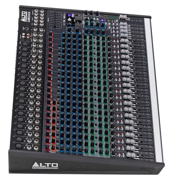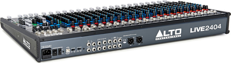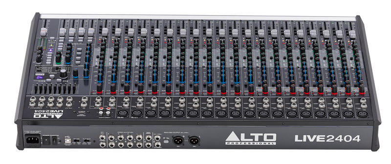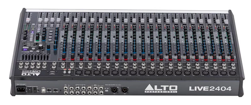 Известный итальянская компания Alto, анонсировала концертный микшер Alto Live 2404. Пассивный микшер предлагает Вашему вниманию 24 входных канала и профессиональный эффект-процессор Alesis. Восемь моновходов микшера оснащены независимыми динамическими компрессорами с индивидуальными ручками настройки уровня компрессии. Микшер предлагает четыре пары стереовходов для коммутации клавишных инструментов, цифровых фортепиано и инструментов, использующих стереокоммутацию. Обновленная линейка концертных аналоговых микшеров АLTO LIVE предлагает Вам воспользоваться большим набором профессиональных функций, включающих в себя 18 высококачественных микрофонных предусилителей, аналоговую компрессию, канальные трехполосные и 9(ти)-полосный эквалайзер в мастер-секции. Кроме этого микшер имеет достаточно гибкие возможности маршрутизации звукового сигнала.