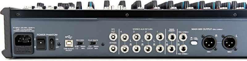 Микшер имеет в своем наборе узнаваемые пользователям разного профессионального уровня компоненты, предлагая все, что может быть важно для работы со звуком на концертах и музыкальных презентациях. Использование микшера одинаково комфортно как для пользователей начального, так и профессионального уровня. Есть четыре AUX-шины с переключателями pre/post, USB-интерфейс для подключения и взаимодействия с ПК. Блок питания встроенный.