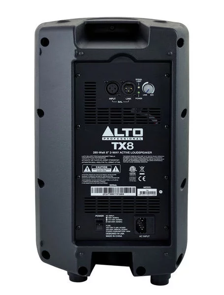 Компания Alto Professional, известная своей популярной серией акустических систем Truesonic, представляет новую бюджетную серию TX. Новая серия унаследовала лучшее от предшественника. Акустическая система ТХ8 оснащена усилителем класса D, устойчивым к перегрузкам. Данный усилитель выдает 280 Вт предельной мощности. Корпус оснащён басовым фазоинвертором и отделан стальной решёткой для прочности. С помощью этой акустической системы можно создать непревзойденную атмосферу как в закрытых помещениях, таких как клубы, рестораны, актовые залы, так и на выездных DJ концертах под открытым небом. Трапециевидный корпус дает возможность устанавливать систему на пол для использования в качестве монитора. Для лучшей транспортировки на корпусе предусмотрены две ручки. Также в конструкции системы предусмотрен стакан 35 мм, чтобы иметь возможность устанавливать систему на стойку.