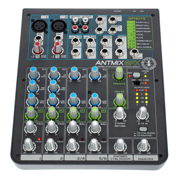 ANTMIX 6FX - компактный настольный микшерный пульт широкого спектра применения.
