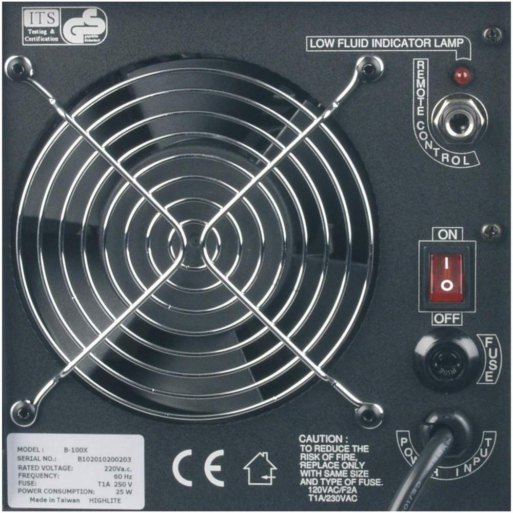 Машина имеет двойное колесо “Double Bubble Wheel”, конструкция которого позволяет производить непрерывный поток мыльных пузырей. B-100X отличается вдвое большим объёмом выхода, по сравнению с другими машинами такого типа. Жидкость, которая не была использована, стекает обратно в емкость для дальнейшего использования. С помощью струбцины и скобы машину можно закрепить на верхних конструкциях. Эту модель также отличает наличие встроенного PC-контроллера, позволяющего управлять машиной при помощи беспроводного пульта управления BCR-1 или пульта с таймером BCT -1 (дополнительные опции, в комплект поставки не входят). Рекомендуемая жидкость для использования - Antari BL-5, BL-1