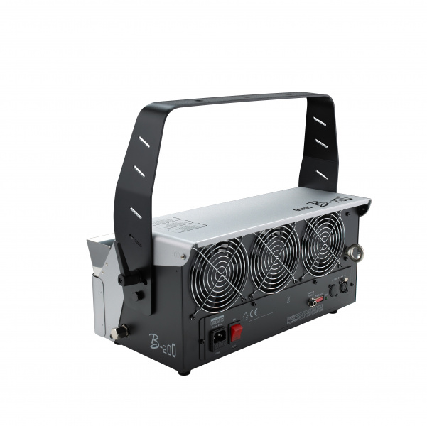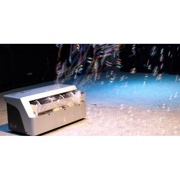 Машина имеет 4 двойных колеса “Double Bubble Wheel”, конструкция которого позволяет производить непрерывный поток мыльных пузырей. Набор из 3 вентиляторов обеспечивает мощный выброс пузырей на большое расстояние.