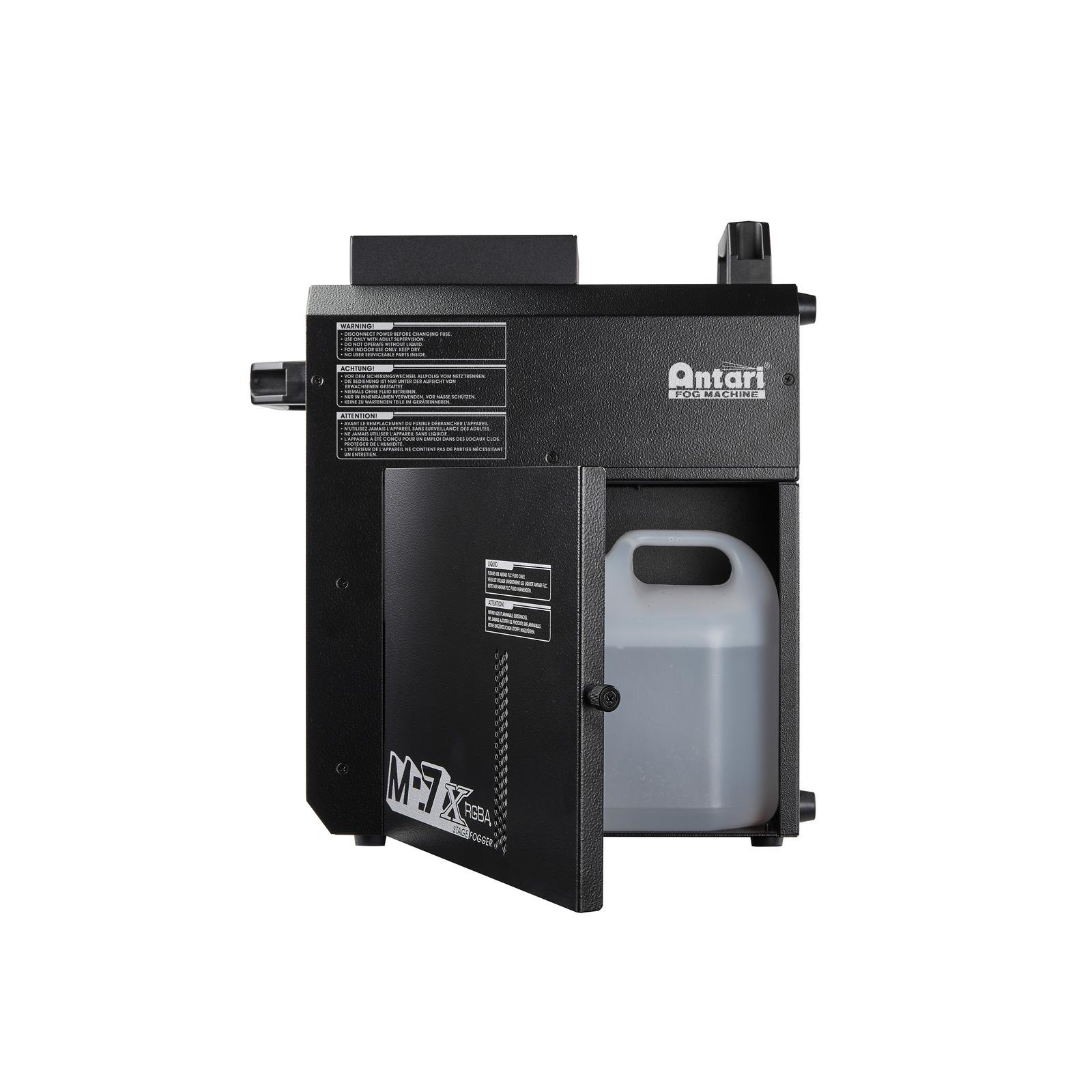 M-7X - это модернизированная версия дым-машины со светодиодной подсветкой M-7 RGBA. С улучшенным нагревателем, усовершенственной конструкцией генератор может обеспечивать более мощный, большего объема и более быстрый эффект выброса дымовой струи. M-7 - профессиональная дым машина, производящая мощный эффект дымового взрыва c RGB LED подсветкой, предназначенная для турового использования. Прочная металлическая конструкция идеально подходит для транспортировки, при этом жидкость хранится в специальном герметичном резервуаре внутри машины. Встроенная система Wireless DMX позволяет обходиться без кабелей, облегчая подключение и использование генератора, используя автоматическую настройку частоту. Новая нагревательная система обеспечивает мощную кратковременную струю до 6 метров высотой. Специально разработанная жидкость на водяной основе FLC-5 позволяет производить сильный дымовой выброс до 20 сек. с мгновенным последующим рассеиванием. При этом генератор можно располагать под любым углом, не беспокоясь о проливе жидкости. А 22 ярких светодиода по 3 Вт придадут цвет струе дыма, делая ваше шоу еще более красочным и незабываемым!