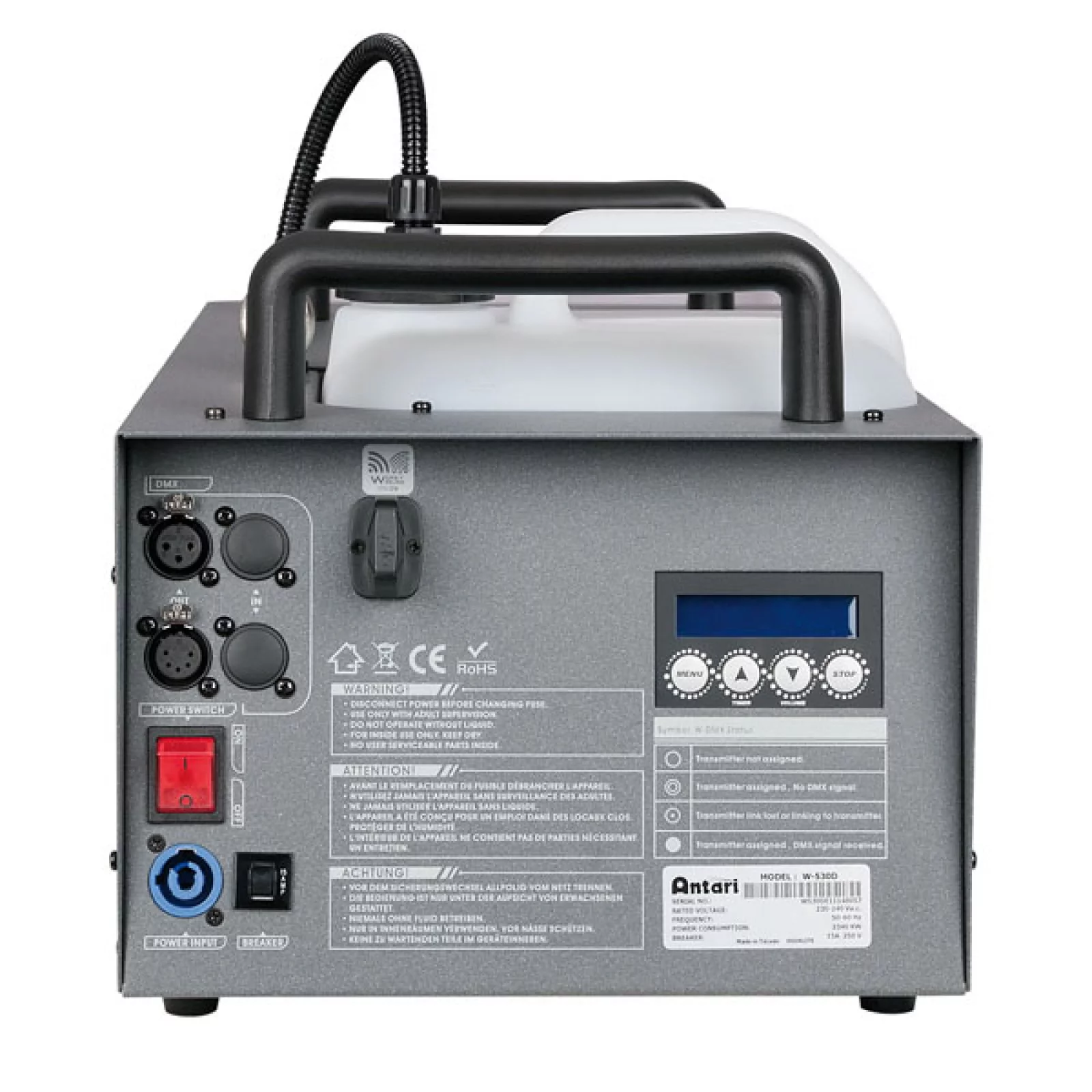 W-530 -это ставшая уже классической дым машина от Antari Z-3000II, которая обзавелась радио пультом ДУ, что делает ее еще более универсальной и практичной в эксплуатации. Управлять дым машиной можно с расстояния до 50м. Новый оптиковолоконный датчик (ОРТО) обеспечивает точный контроль за подачей жидкости. Встроенный пульт с LCD дисплеем способен регулировать обьем, продолжительность и интервал выходящего дыма. Мощный нагревательный элемент позволяет производить качественный, не содержащий влаги дым, делая возможным использовать W-530 во всех инсталляциях, клубных концертах, дискотеках и открытых площадках.