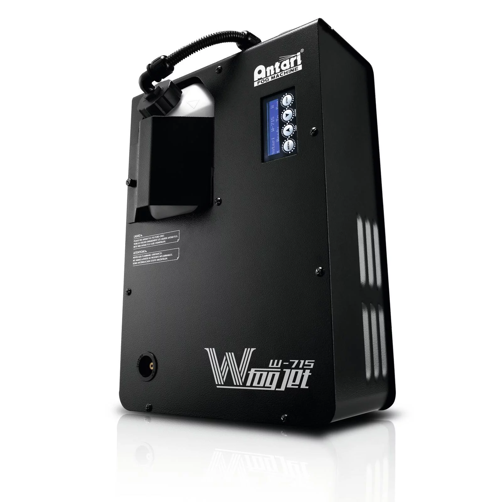 W-715 - новая дым машина, производящая мощный эффект дымового взрыва. Новая нагревательная система обеспечивает мощную кратковременную струю до 5 метров высотой. Специально разработанная жидкость на водяной основе FLC-5 позволяет производить сильный дымовой выброс до 20 сек. с мгновенным последующим рассеиванием.