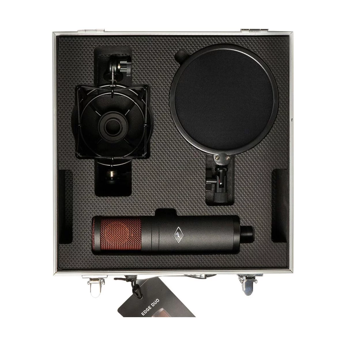 Antelope Audio Edge Duo представляет собой двухмембранный конденсаторный микрофон с большой диафрагмой. Данная модель предназначена в первую очередь для использования с технологией моделирования микрофонов Antelope, которая имитирует характеристики различных винтажных и классических микрофонов. Микрофон с двойной мембраной и двумя выходами предназначен для обеспечения точного отклика. Входящий в комплект медный кабель обеспечивает подключение от 5-контактного выхода микрофона к двум 3-контактным разъемам XLR.Микрофон оснащен двумя 1,3-дюймовыми мембранами с золотым напылением толщиной около 6 микрон. Edge Duo фиксирует частоты от 20 Гц до 20 кГц, записывая их прозрачными, благодаря своей конструкции с низким резонансом.