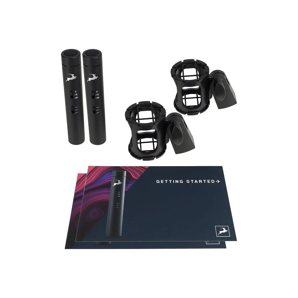 Antelope Audio Edge Note Bundle - пара конденсаторных моделирующих микрофонов с малой диафрагмой. Компактный универсальный микрофон с кардиоидной диаграммой направленности предлагает высокий уровень звукового давления в 146 дБ. Модель при подключении к звуковому интерфейсу Antelope, например, к модели Zen Go Synergy Core, имеет возможность эмулировать до 13 различных вариаций студийных микрофонов, среди которых Aalborg 4006 — DPA 4006A, Berlin 184 — Neumann KM 184, Hamburg 40 — Sennheiser E 914, Vienna D112 — AKG D112 MKII и другие. Микрофон также оснащается фильтром ВЧ с переключением 75 Гц / 115 Гц и аттенюатором с переключением -10 дБ / -20 дБ. Микрофон поставляется в металлическом корпусе чёрного матового цвета и комплектуется амортизаторным держателем для устранения механического шума.