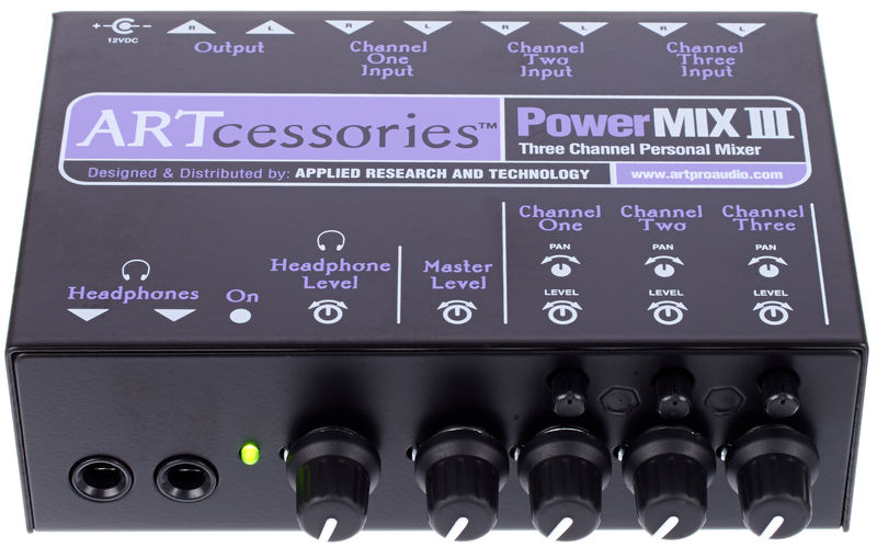 Микшер PowerMIX III компактное решение для подключения трех источников звука для персонального микширования в наушники и имеет три стерео входа, каждый из которых может использоваться как моно.