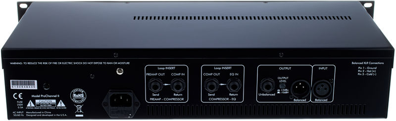 Полупараметрический эквалайзер прибора предоставляет широкие возможности регулировки и может применяться как до, так и после динамической обработки сигнала. Отдельные точки ввода на задней панели прибора позволяют включаться во внутреннюю обработку сигнала непосредственно после микрофонного предусиления или перед эквализацией и динамической обработкой. Имеются аналоговые и светодиодные индикаторы уровня.