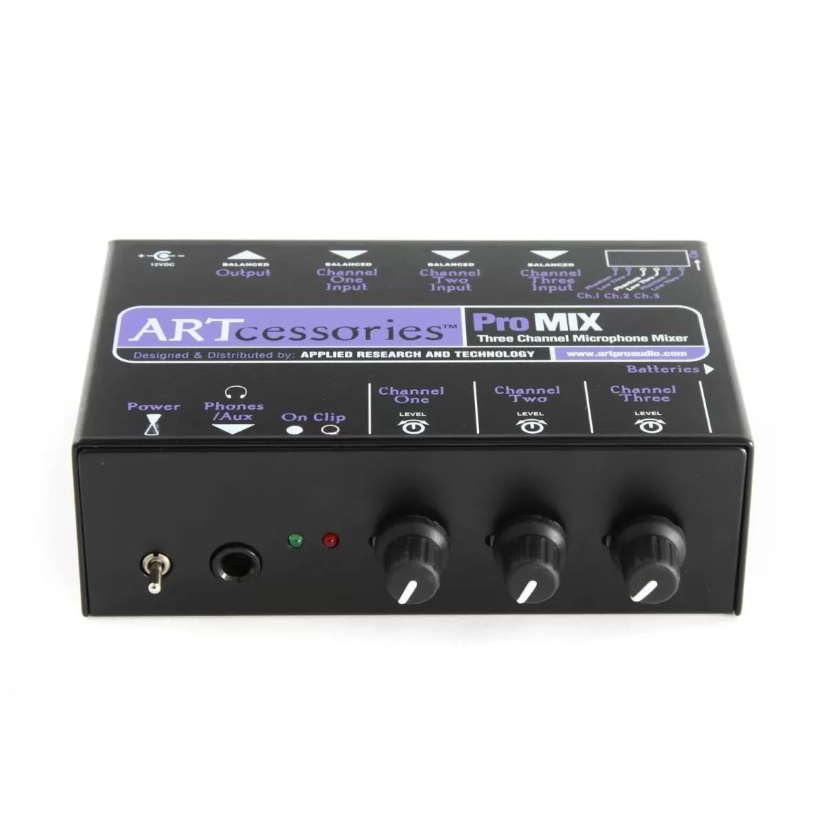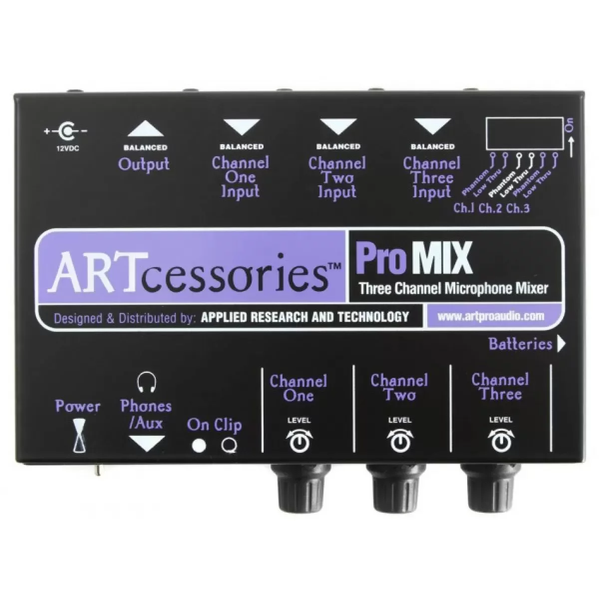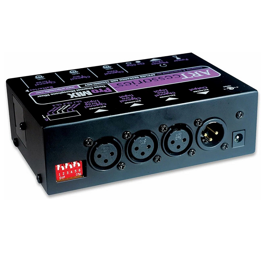Компактный трехканальный микрофонный микшерный пульт с возможностью автономной работы. Все канальные входы оборудованы симметричными разъемами XLR. На каждом канале есть фантомное питание и обрезной фильтр активируемые при помощи DIP переключателей. Выход представлен симметричным разъемом XLR.