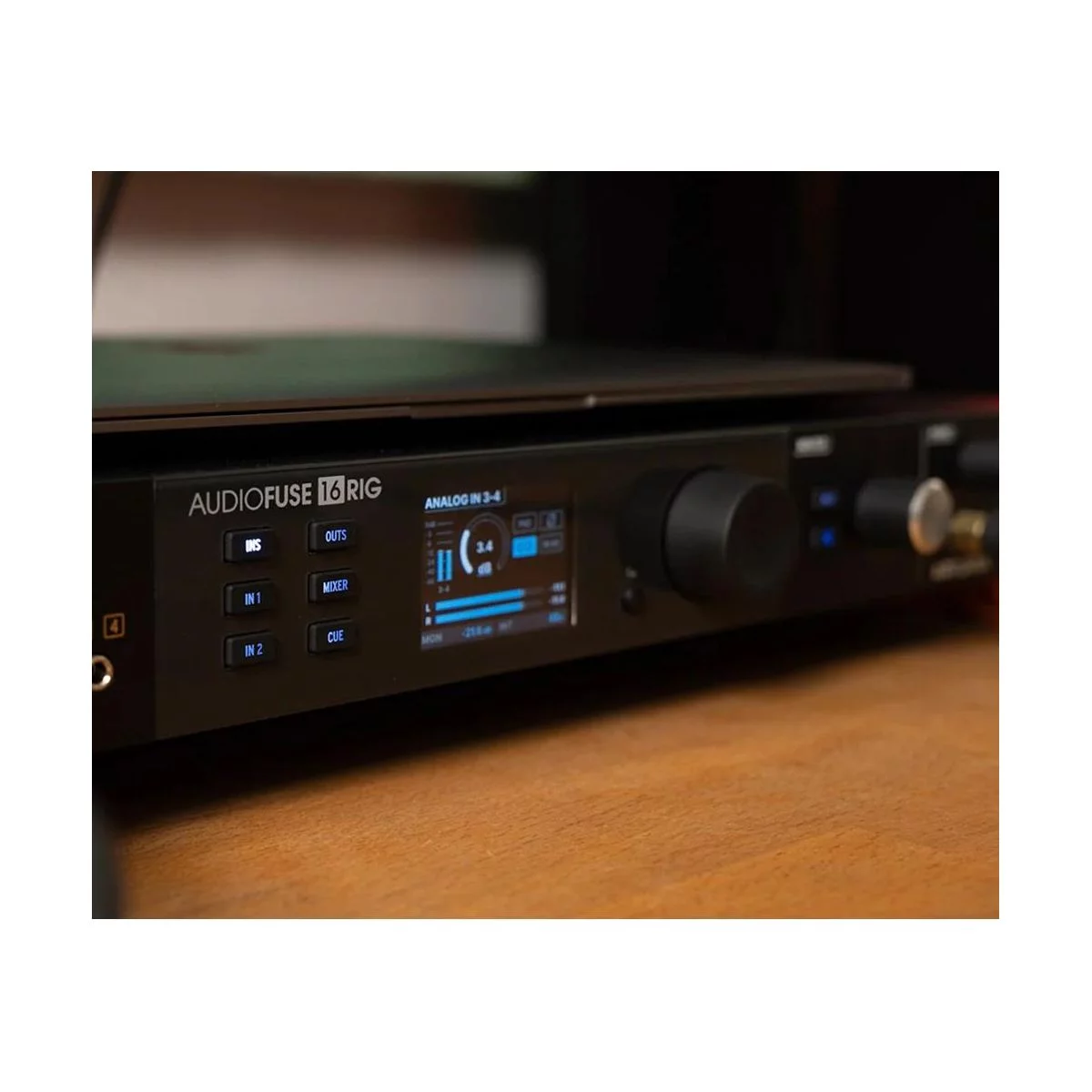 AudioFuse 16Rig предназначен для подключения большого количества аудиоустройств, синтезаторов и оборудования, и централизованного управления ими. Звуковая карта поддерживает сложные сценарии маршрутизации живого звука, что позволяет более эффективно перенаправлять сигнал в студии и на сцене.