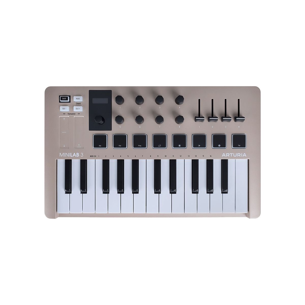 От приятной на ощупь клавиатуры до интеллектуальных, интегрированных в DAW пэдов и фейдеров, а также мини-дисплея с отображением параметров в реальном времени — каждый аспект MiniLab 3 разработан так,