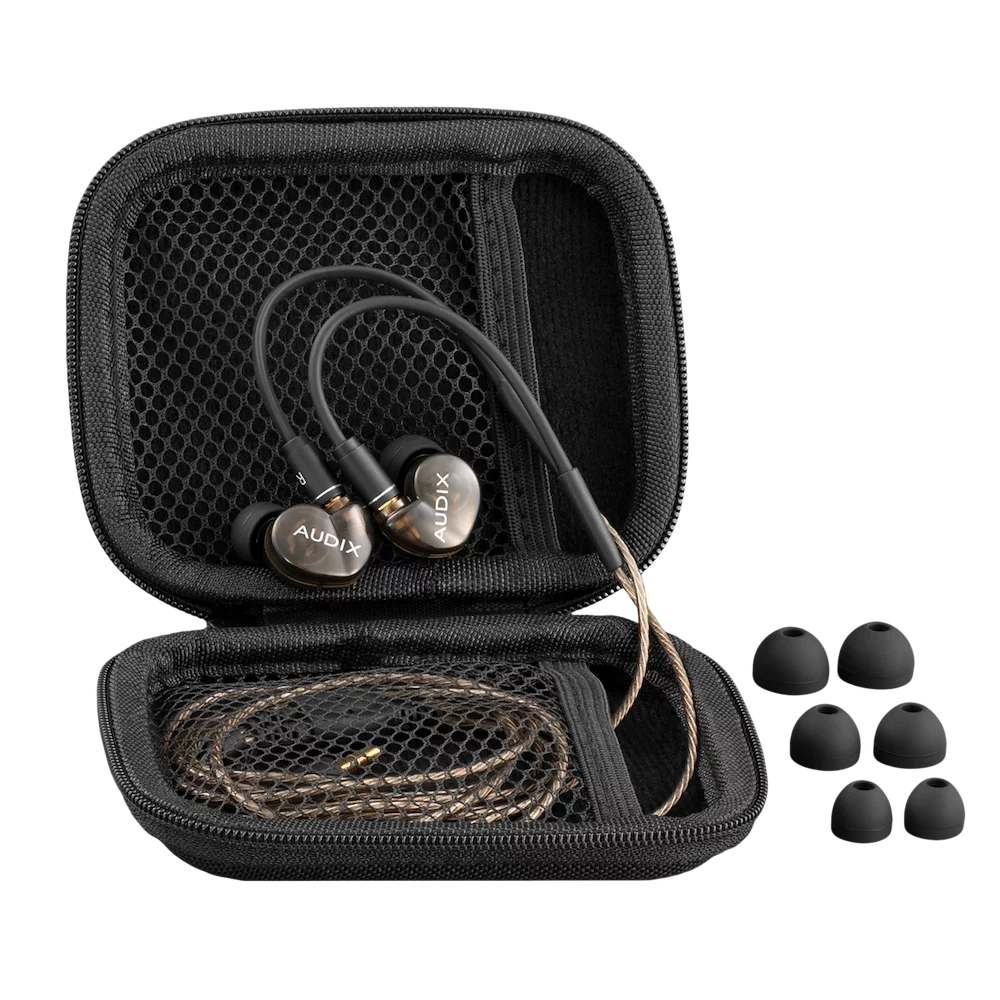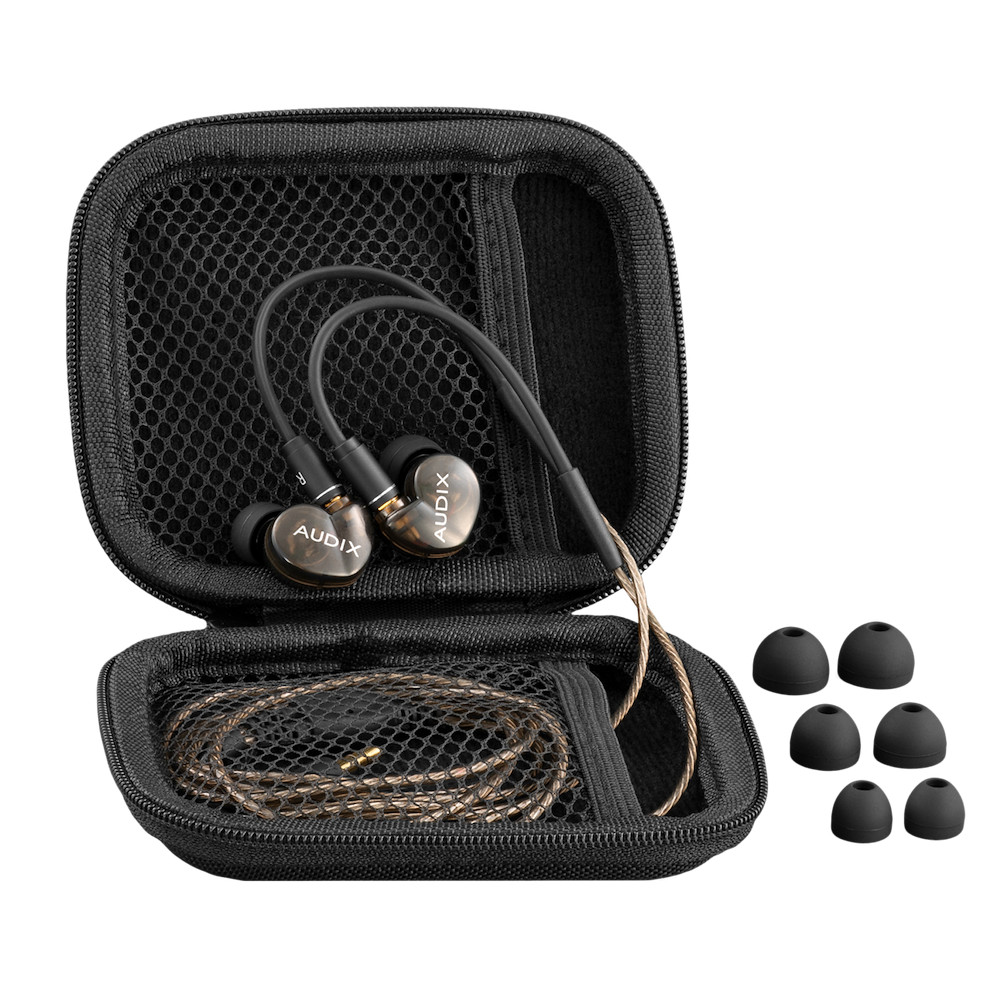 Легкие и прочные литые корпуса имеют внутреннюю текстуру и порты для акустического контроля и точности во всем диапазоне частот. Входящие в комплект пары маленьких, средних и больших силиконовых насадок надежно крепятся для оптимального комфорта и звукоизоляции.