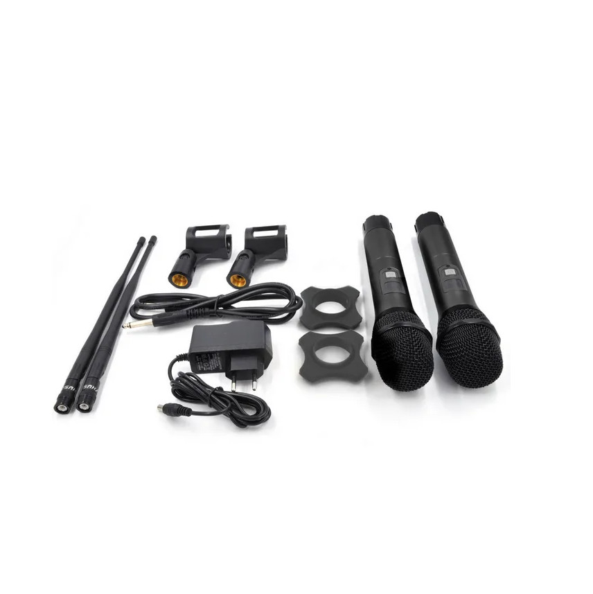 AxelVox DWS7000HT (RT bundle) — высококачественная беспроводная микрофонная система профессионального уровня с установкой в рэк, состоящая из двух микрофонов и двухканального приемника.