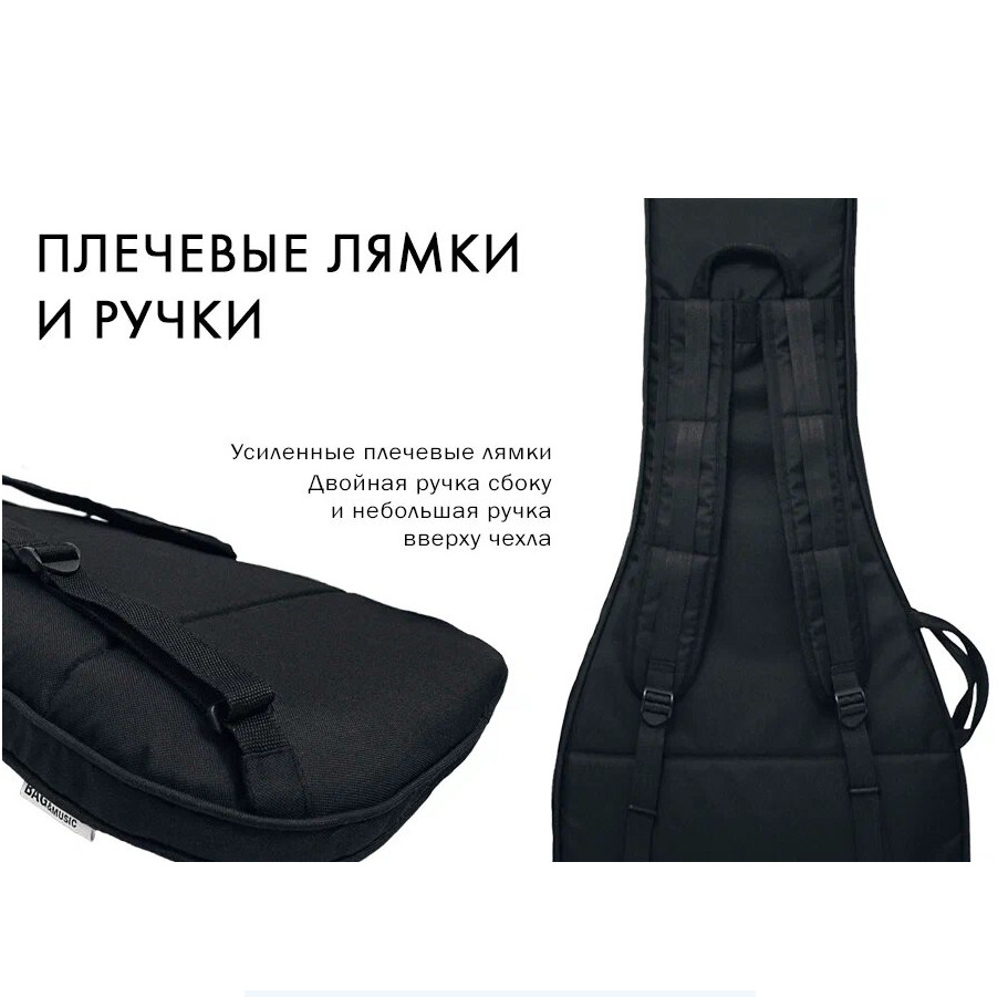 1. Чехол имеет облегчённую конструкцию c использованием поролона, при этом гитара надёжно защищена снаружи и изнутри. Внизу дополнительно установлена амртизирующая прокладка 20 мм из пены.