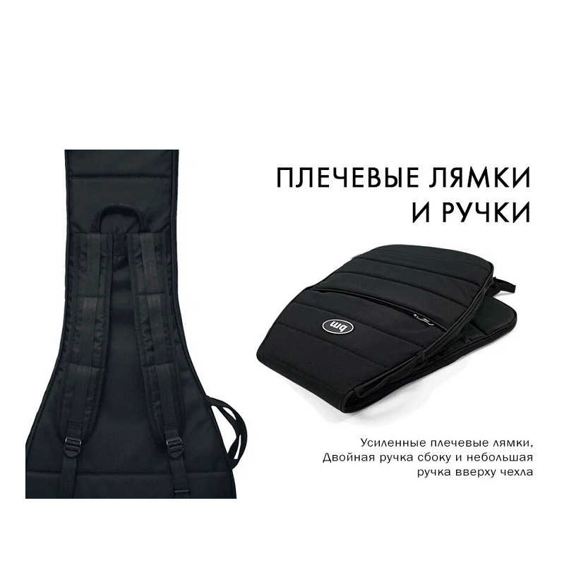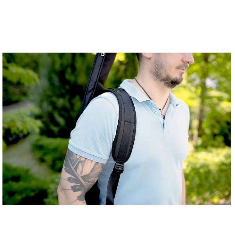 1. Чехол имеет облегчённую конструкцию c использованием поролона, при этом гитара надёжно защищена снаружи и изнутри. Внизу дополнительно установлена амртизирующая прокладка 20 мм из пены.