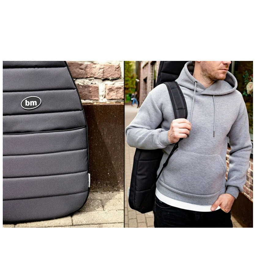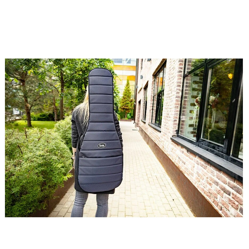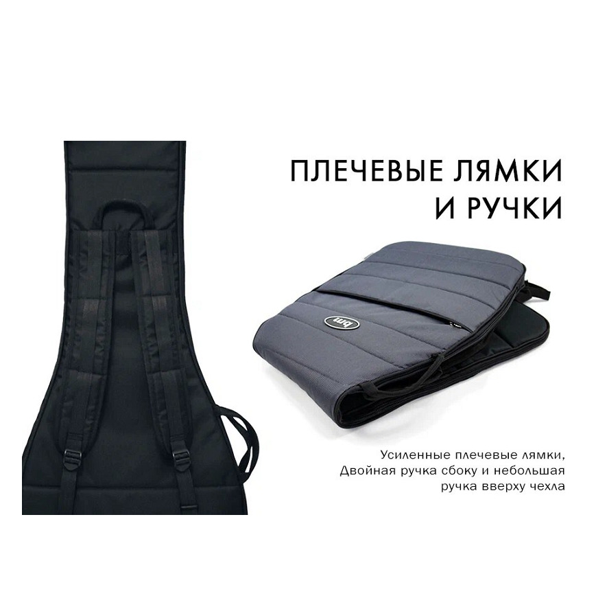 1. Чехол имеет облегчённую конструкцию c использованием поролона, при этом гитара надёжно защищена снаружи и изнутри. Внизу дополнительно установлена амртизирующая прокладка 20 мм из пены.