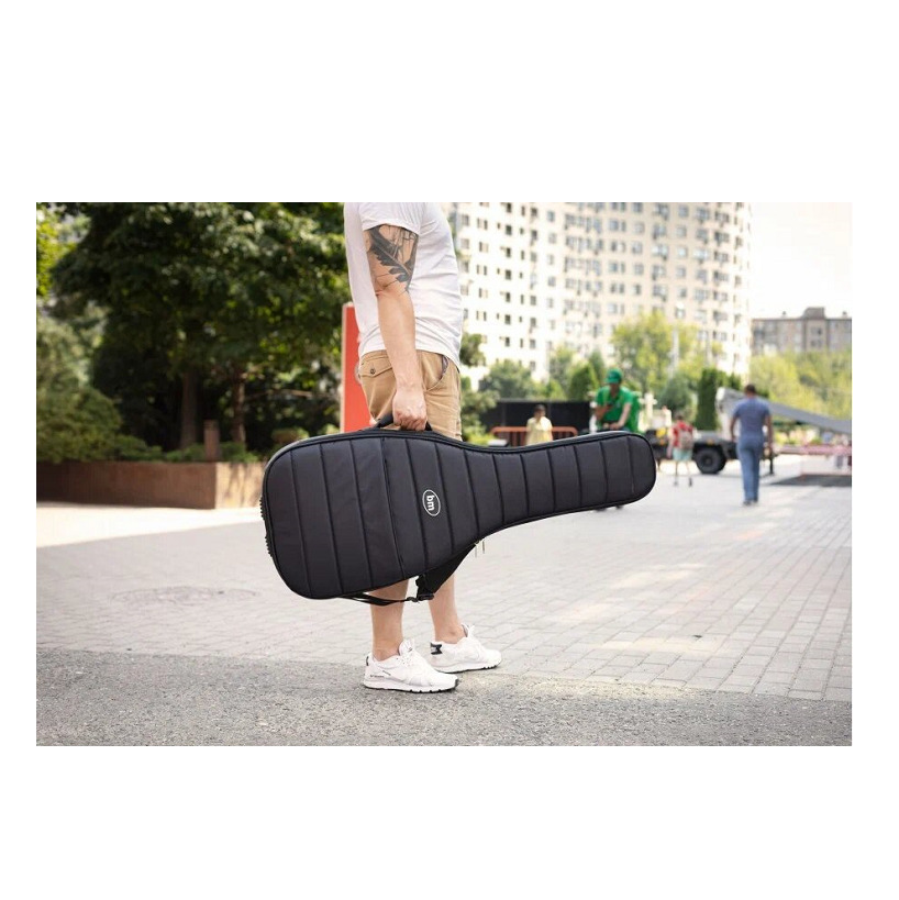 1. Чехол имеет объемное отделение, гитара надёжно защищена снаружи и изнутри толщина уплотнителя на ободе 20 мм, внизу 40 мм, стенки - 15 мм.