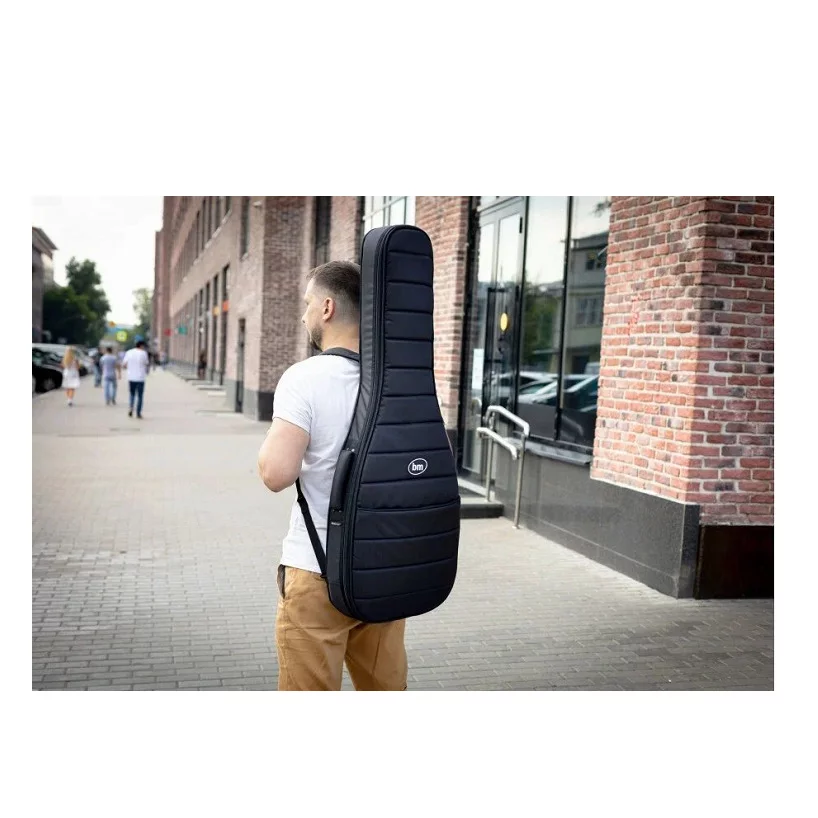 1. Чехол имеет объемное отделение, гитара надёжно защищена снаружи и изнутри толщина уплотнителя на ободе 20 мм, внизу 40 мм, стенки - 15 мм.