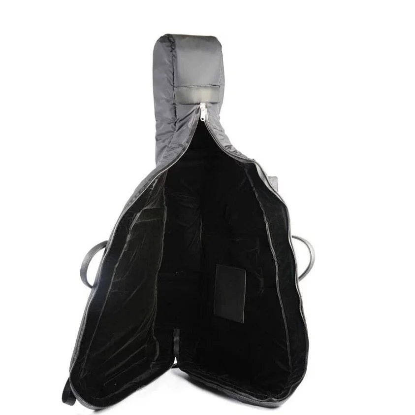 ВНЕШНИЕ ПАРАМЕТРЫ: 125*49*38 см ВНУТРЕННЕЕ ОПИСАНИЕ: Внутреннее ложе выполнено из полиуретановой пены, защищающей инструмент от перепадов температур Бархатное покрытие, предающее инструменту идеальный комфорт ВНЕШНЕЕ ОПИСАНИЕ: Внешний материал – нейлон с полиуретановым покрытием Водонепроницаемые молнии Внешняя усиленная защита для моста 2 мягких заплечных ремня, регулирующихся по длине Двойная боковая ручка Боковой карман для струн Передний карман для аксессуаров (15*17*5 см) Передний карман для смычка (73*10*9 см) Задний карман для нот (34*38 см)