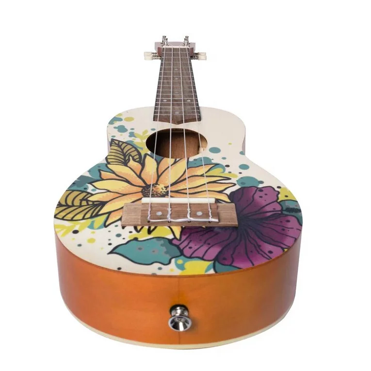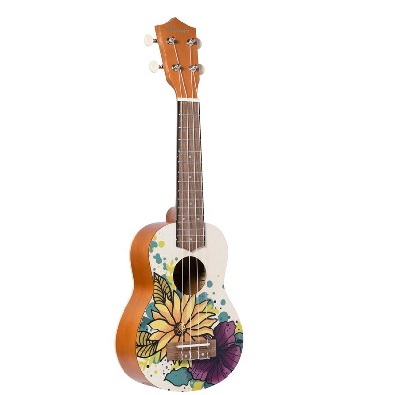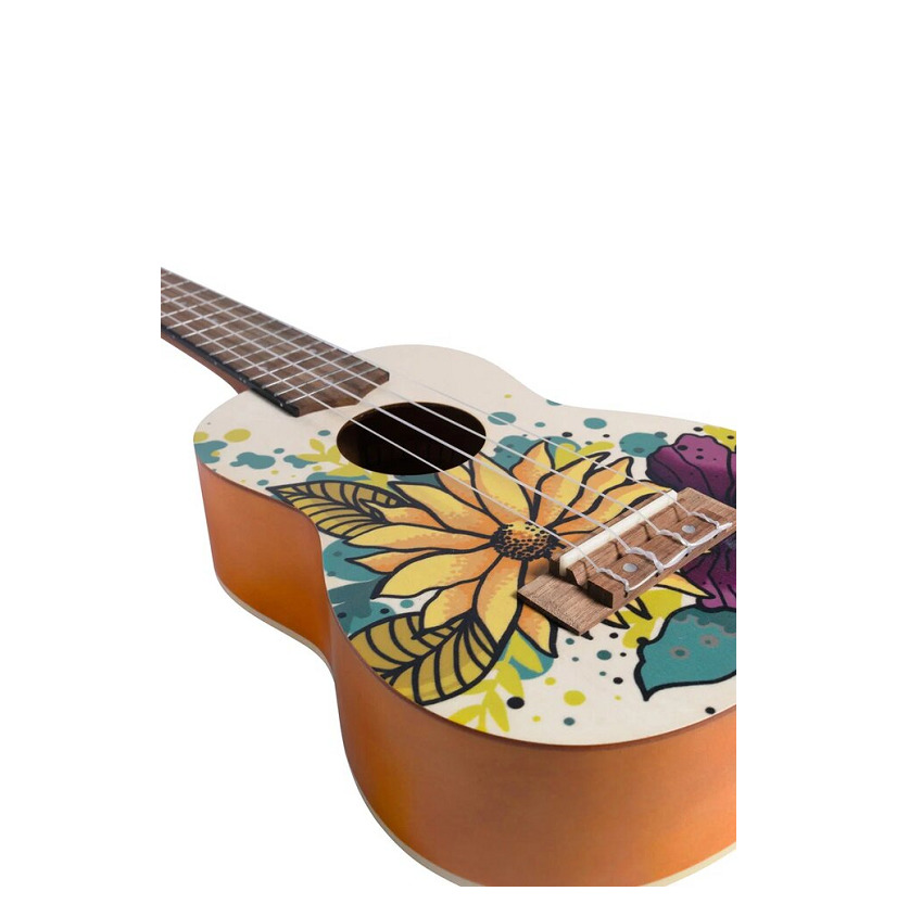 укулеле сопрано с чехлом, рисунок цветы