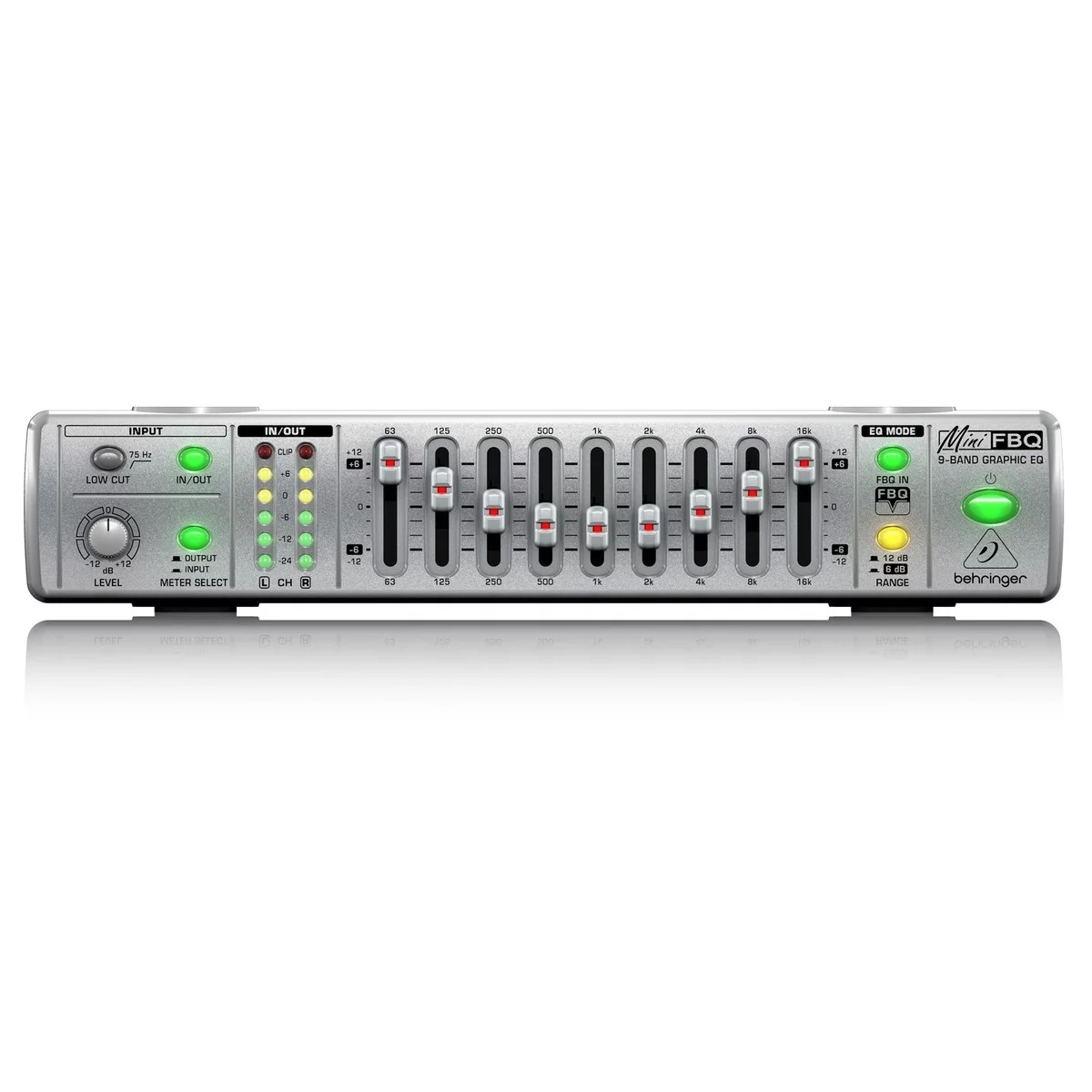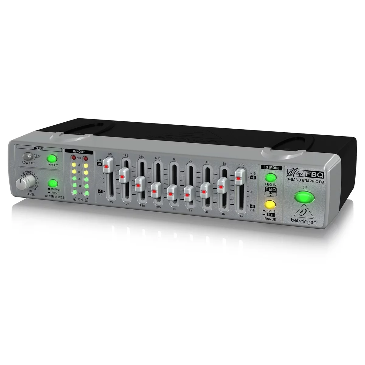 MINIFBQ FBQ800 – модель, которая наилучшим образом подходит для новичков, звукооператоров-любителей и организаторов выездных концертов. Компактный, лёгкий, недорогой и надёжный, этот эквалайзер создан для решения базовых задач частотной коррекции – устранения артефактов и простой подстройки звучания под акустическую систему. Коррекция происходит в девяти полосах, центральная частота нижней из которых составляет 63 Гц, а верхней – 16000 Гц. Общий диапазон поддерживаемых частот – 10-22000 Гц, что является стандартным спектром слышимости звука для человеческого уха. Амплитуда коррекции переключаемая, может составлять 6 или 12 дБ. Искажения звука при подаче сигнала на MINIFBQ FBQ800 составляют менее 0,003%.