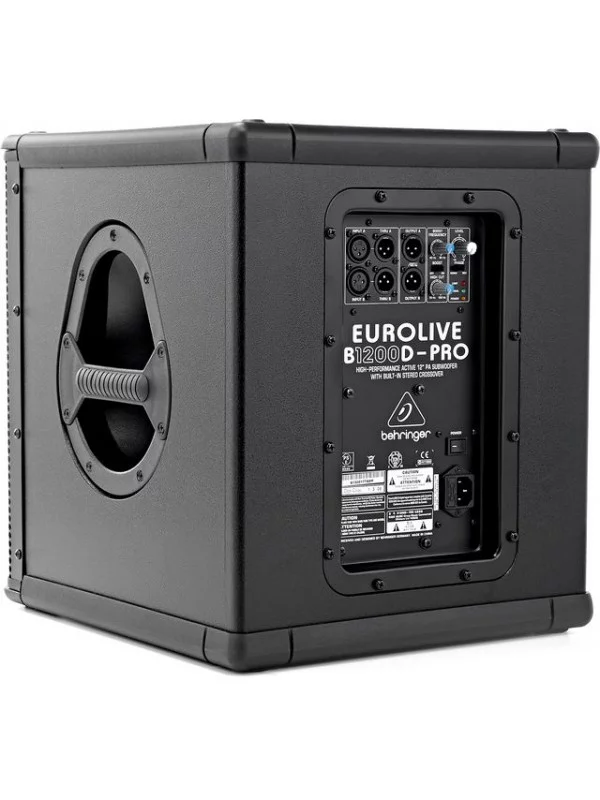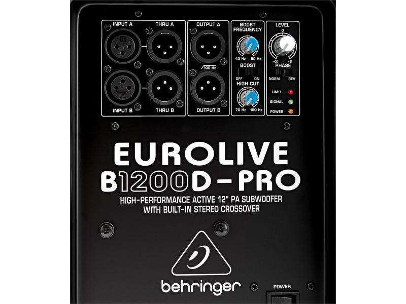 Два ключевых компонента EuroLive B1200D-PRO – усилитель и излучатель. В сабвуфере установлен усилитель класса D, отличающийся линейностью передаточной функции и высокой энергоэффективностью. Встроенные лимитер и температурный предохранитель призваны защитить излучатель в том случае, если на входной разъём будет подан чрезмерно мощный сигнал или в случае перегрева из-за слишком долгой эксплуатации. Пиковая мощность усилителя составляет 500 Вт.