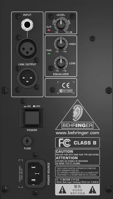 В EuroLive B212D установлено два драйвера. Тот, что отвечает за воспроизведение низких частот, является длинноходным и имеет 12-дюймовую диафрагму. Высокочастотный драйвер – компрессионный, с алюминиевой диафрагмой диаметром 1,35 дюйма. Широкий равномерный фронт излучения обеспечивает рупор экспоненциальной формы.