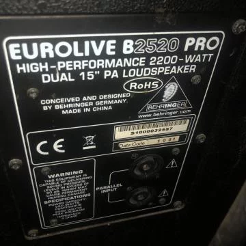 Широкополосная концертная колонка EuroLive B2520 PRO отличается высокой степенью линейности передаточной функции и чрезвычайной надёжностью. Это возможно благодаря использованию сразу трёх драйверов: двух низкочастотных, с длинноходной конструкцией и 15-дюймовыми диафрагмами, и одного высокочастотного, компрессионного, с 1,75-дюймовой мембраной из титана. Суммарная номинальная мощной всей системы составляет 550 Вт, однако пиковая в четыре раза больше – 2200 Вт, так что запас прочности, отделяющий номинальный режим работы от состояния перегрузки, колоссален. Твиттер же дополнительно защищён лимитером. Рупор твиттера имеет углы дисперсии равные 100 градусам по горизонтали и 50 градусам по вертикали. Акустическое давление, которое создаётся всеми тремя излучателями, может достигать 99 дБ SPL.