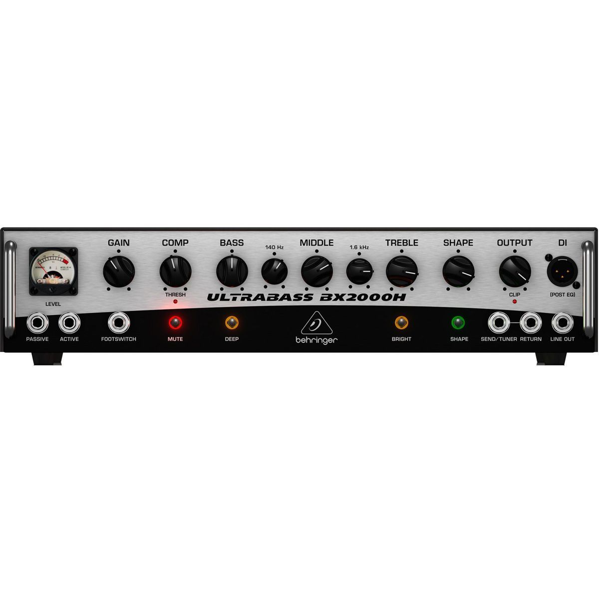 Behringer UltraBass BX2000H - это двухканальный бас-гитарный усилитель типа "голова", мощностью 200 Вт. Усилитель оснащен двумя входными разьемами для подключения бас-гитар с активной и пассивной электроникой. Для настройки звучания доступен эквалайзер, компрессор, ручки регулировки входного и выходного уровня. Эквалайзер пятиполосный, он дает возможность настройки частот от 50, 140, 500, 1600 и 7500 Гц. Для создания и передачи мощного звучания усилитель оборудован высоковольтным транзисторным предусилителем, который дает ощущения аутентичного лампового звучания. Классический компрессор помогает срезать пики и увеличить сустейн, настроить идеальное звучание для игры "слэпом". Для подключения напрямую в микшер или звуковую карту предусмотрен балансный выход Direct Out. Кроме этого есть петля для использования внешних педалей эффектов, выходные разьемы для подключения акустических кабинетов и педали-контроллера. Для защиты электроники используется активная система охлаждения с переменной скоростью вентилятора и тепловая защита от перегрузки.