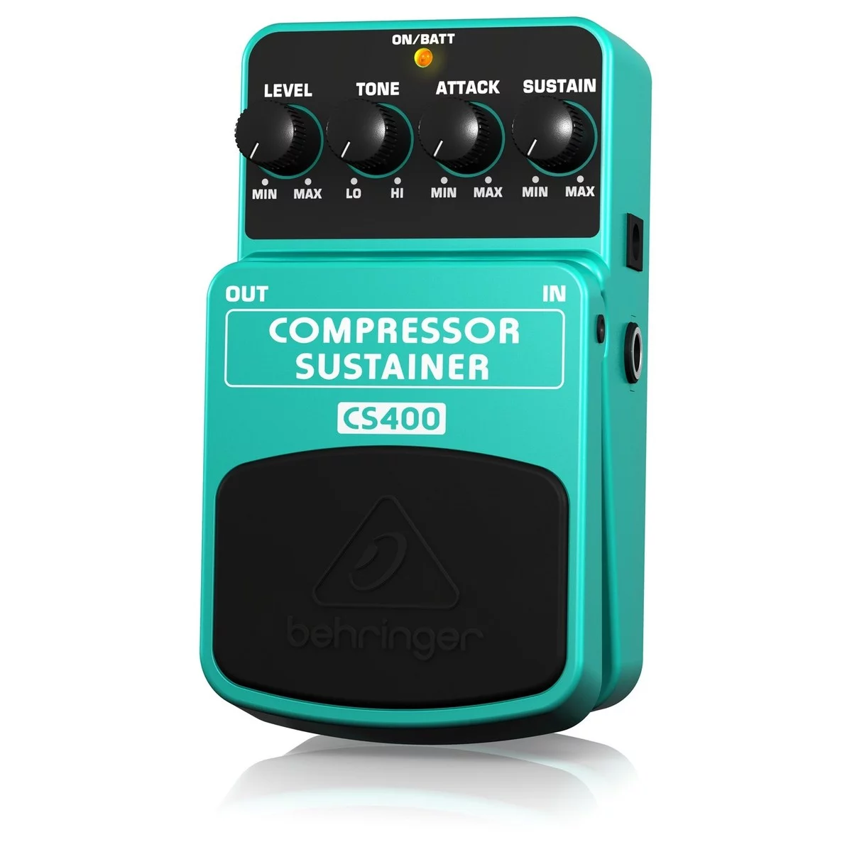 Пропустив сигнал через CS400, получаешь ровный, аккуратно скомпрессированный звук и долгий сустейн. Педаль ослабляет громкие и поднимает тихие сигналы, не изменяя при этом характера тембра. Для настройки предусмотрены регуляторы уровня, тона, атаки и сустейна. Бесшумную работу CS400 гарантирует первоклассный электронный выключатель, а светодиодный индикатор обеспечивает визуальный контроль работы эффекта и состояния батареи. Питание осуществляется от батареи 9 В или сетевого адаптера (в комплект поставки не входит). Этот продукт BEHRINGER был разработан как прямой конкурент ведущим изделиям на рынке.