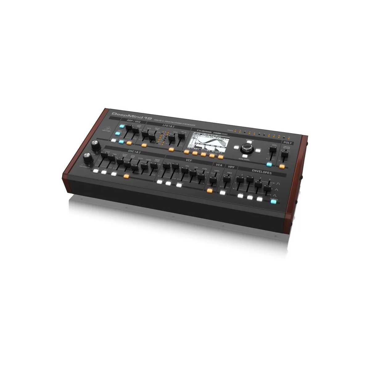 DEEPMIND 12D представляет собой аналоговый, 12-голосый полифонический синтезатор, созданный компанией Behringer в качестве удобной настольной версии ранее выпущенного DEEPMIND 12. DEEPMIND 12D реализован с использованием сложн