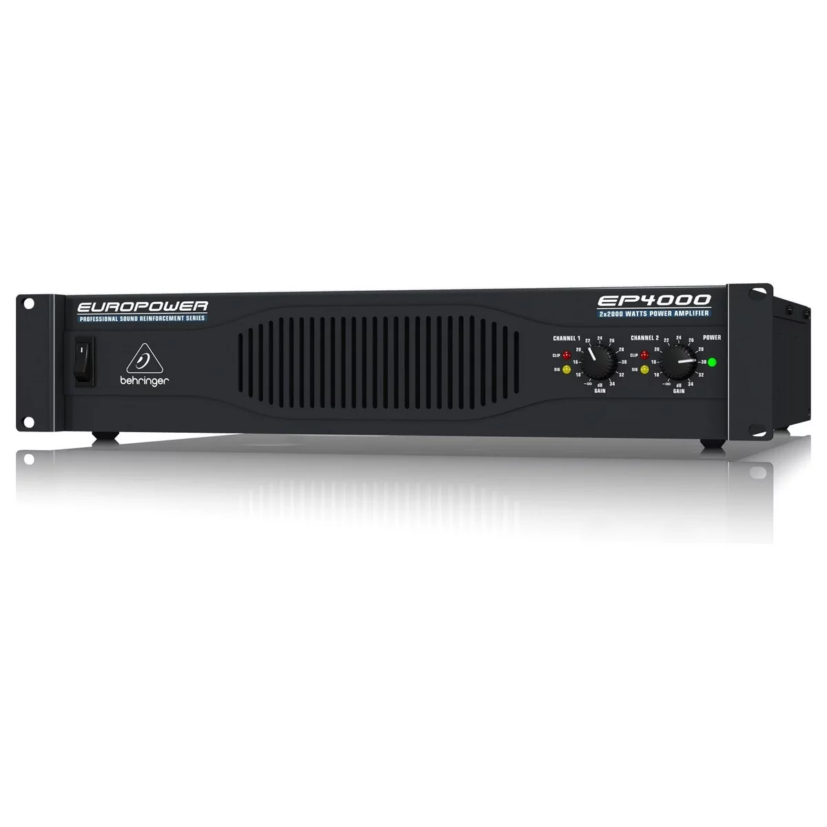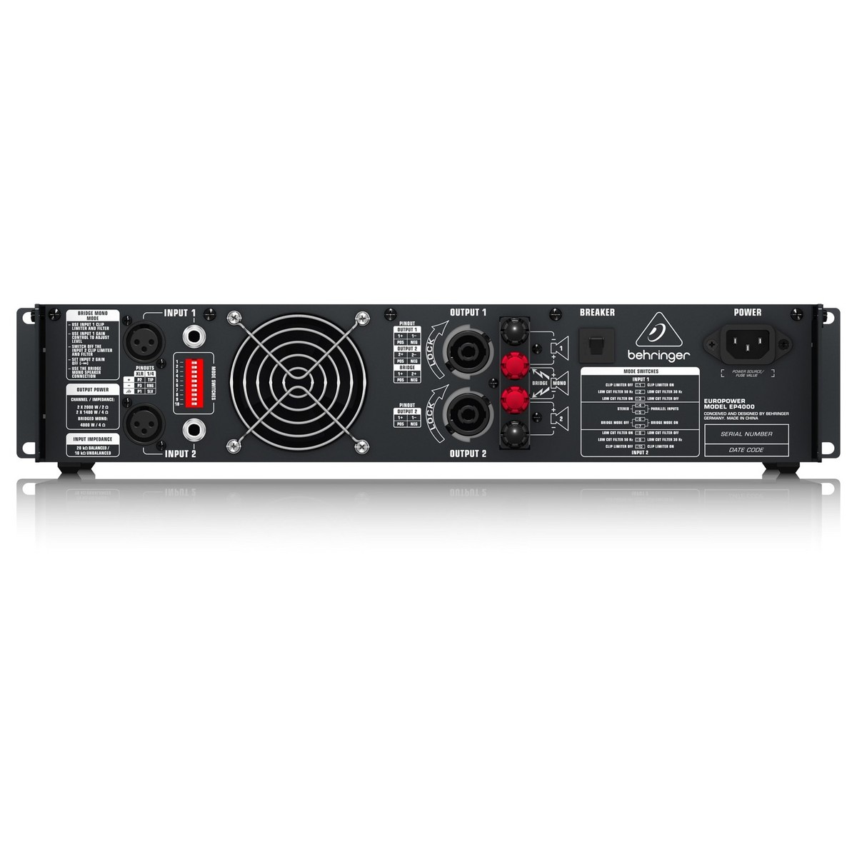 Усилитель EUROPOWER EP4000 рассчитан на подключение концертных колонок, требующих высоких мощностей и безукоризненного качества сигнала. Поэтому его пиковые мощности в стереофоническом режиме при сопротивлении динамиков 2 Ом составляет 2х2000 Вт и при 4 Ом – 2х1400 Вт, а в мостовом – 4000 Вт при сопротивлении 4 Ом. Этого хватает даже на профессиональные громкие динамики, причём уровень искажений при усилении не превышает 0,02%.