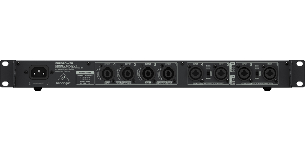 Усилитель при работе искажает сигнал менее чем на 0,3%. Частотный диапазон, поддерживаемый устройством – 20-20000 Гц. Специальная технология Accelerated Transient Response улучшает воспроизведение низких частот, транслируемых через требовательные к интенсивности сигнала вуферы. В EuroPower EPQ304 также встроен собственный кроссовер, работающий на частоте 100 Гц и распределяющий ВЧ и НЧ компоненты по каналам.