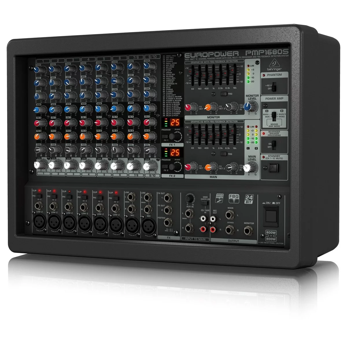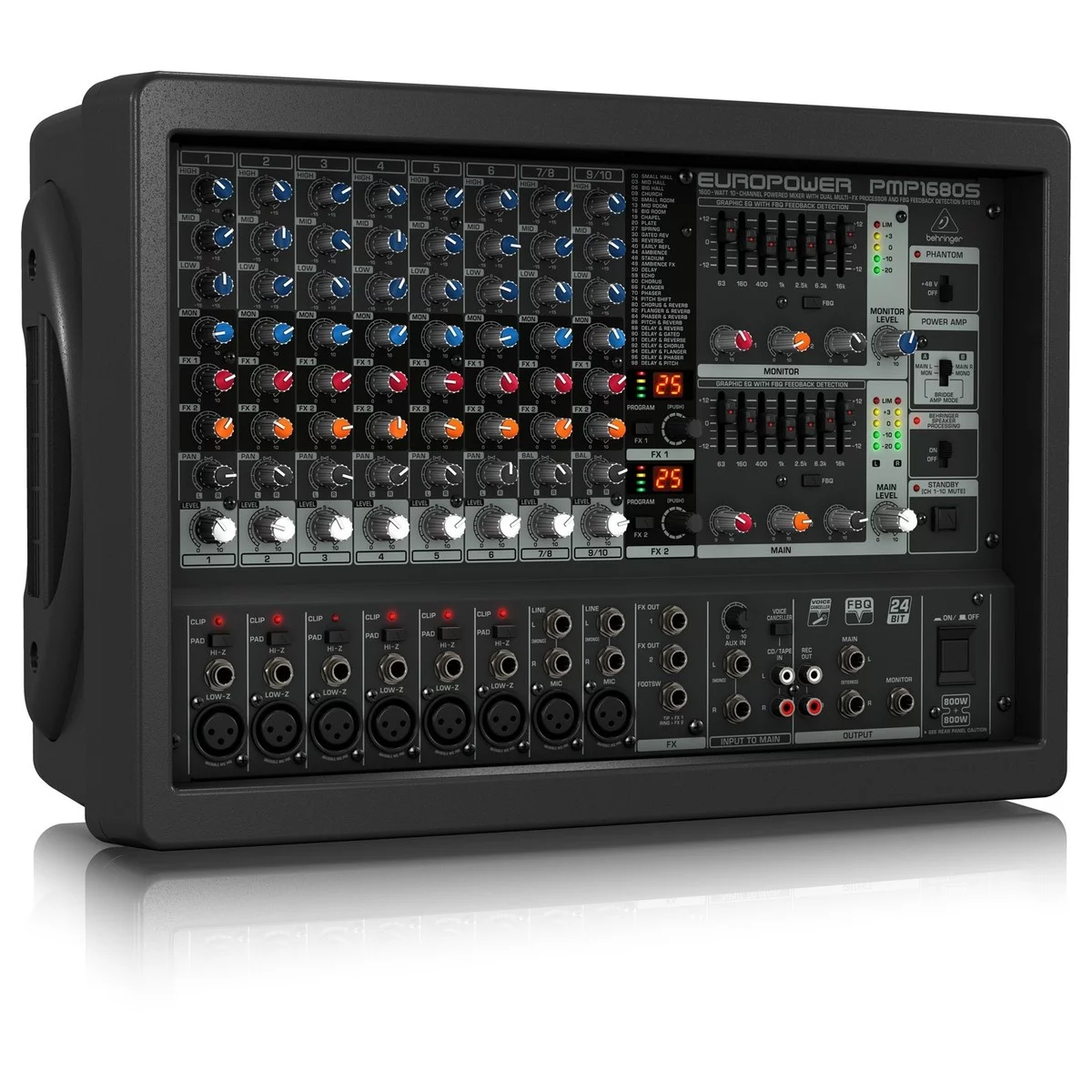 Основной инструмент, с которым при использовании EUROPOWER PMP1680S взаимодействует звукорежиссёр – микшерная консоль. Она представлена 6 монофоническими и 2 стереофоническими каналами, к каждому из которых прикреплён помимо основного разъёма или разъёмов вход для подключения микрофона. Предусилители и отключаемое фантомное питание позволяют использовать с микшером практически любые микрофоны – качество сигнала будет высоким независимо ни от чего.