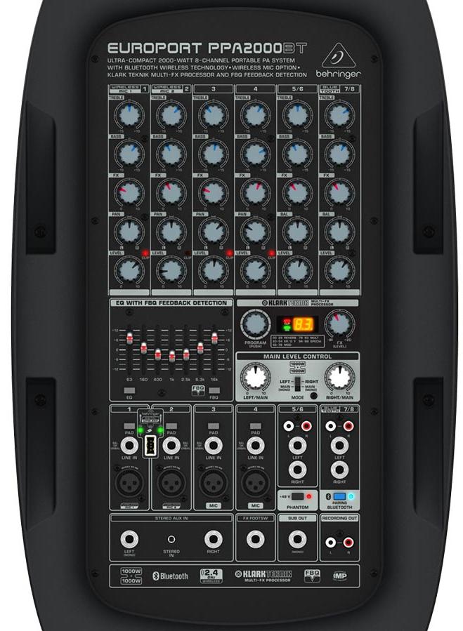 Система оснащена Bluetooth, что позволяет воспринимать и озвучивать треки прямо с мобильных устройств, планшетов или других девайсов. Качественное звучание обеспечивает высокопродуктивный процессор компании KLARK TEKNIK. Специалисты всемирно известной торговой марки специально для бренда BEHRINGER разработали 24-битный процессор звуковых эффектов студийного класса. На выбор пользователя в мелодию можно добавить любой из эффектов: delay, reverb, flange, chorus, pitch shift и много других.