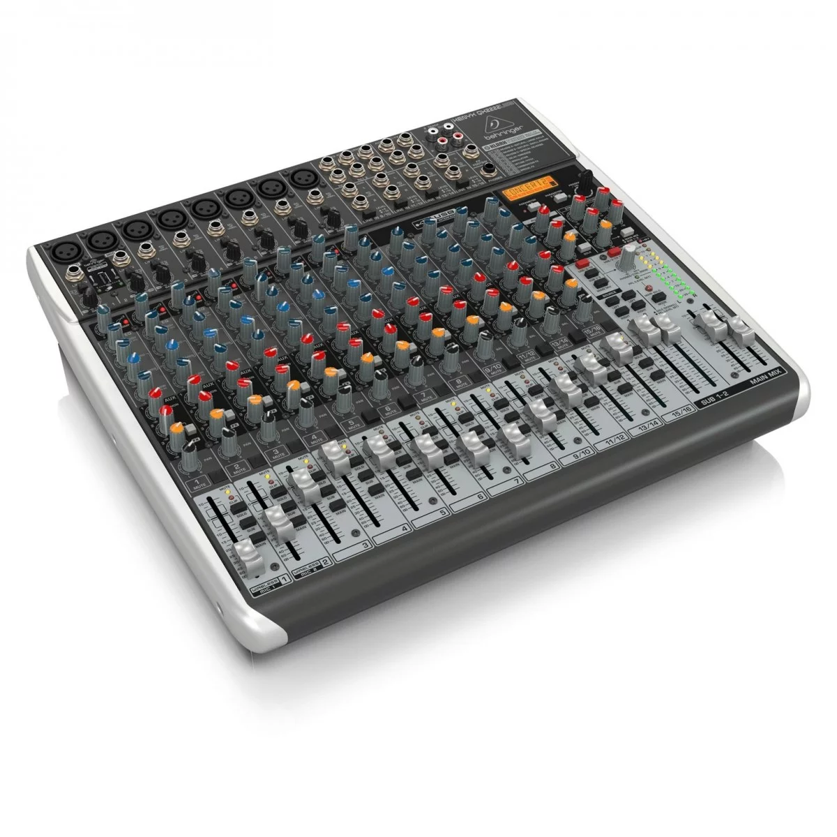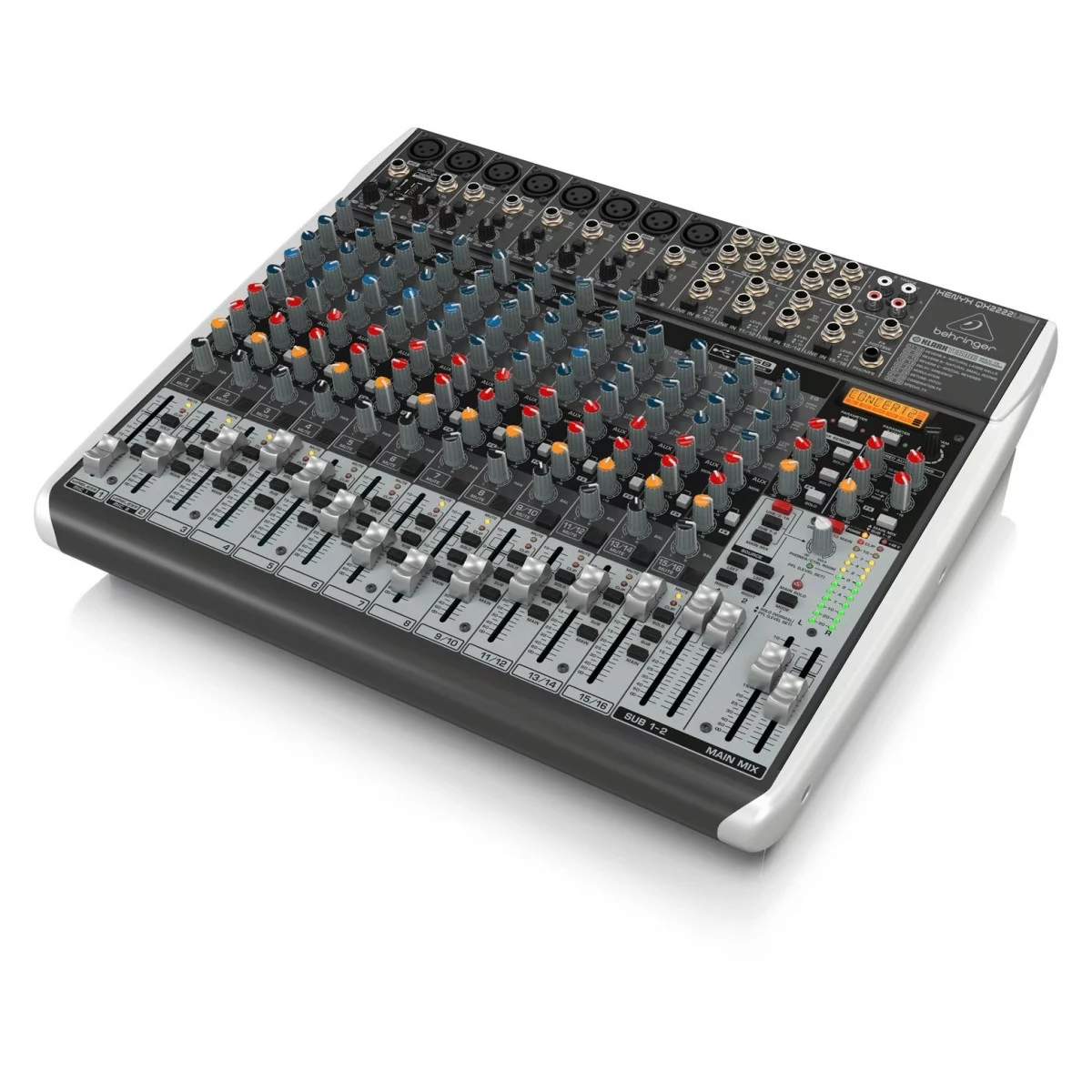 QX2222USB имеет 8 XENYX микрофонных канала с вводами, компрессоры, 3-полосный эквалайзер с полупараметрической серединой и 3 Aux посыла плюс 4 стерео линейного уровня канала, две mix подгруппы, KLARK TEKNIK 24-bit цифровой FX процессором с двойными пользовательскими параметрами управления и встроенный двойной канал ULM беспроводного микрофонного приемника. Все это и многое другое заключено в прочном стальном корпусе.