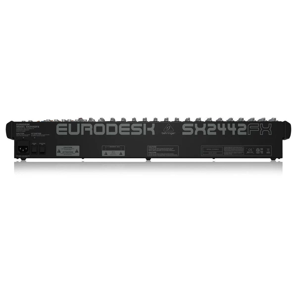 EURODESK SX2442FX имеет ряд функций, максимально облегчающих работу по созданию качественного микса без артефактов. В первую очередь для этого предназначены система детектирования акустической обратной связи FBQ, секция Talkback с встроенным микрофоном и 9-полосный эквалайзер главного микса.
