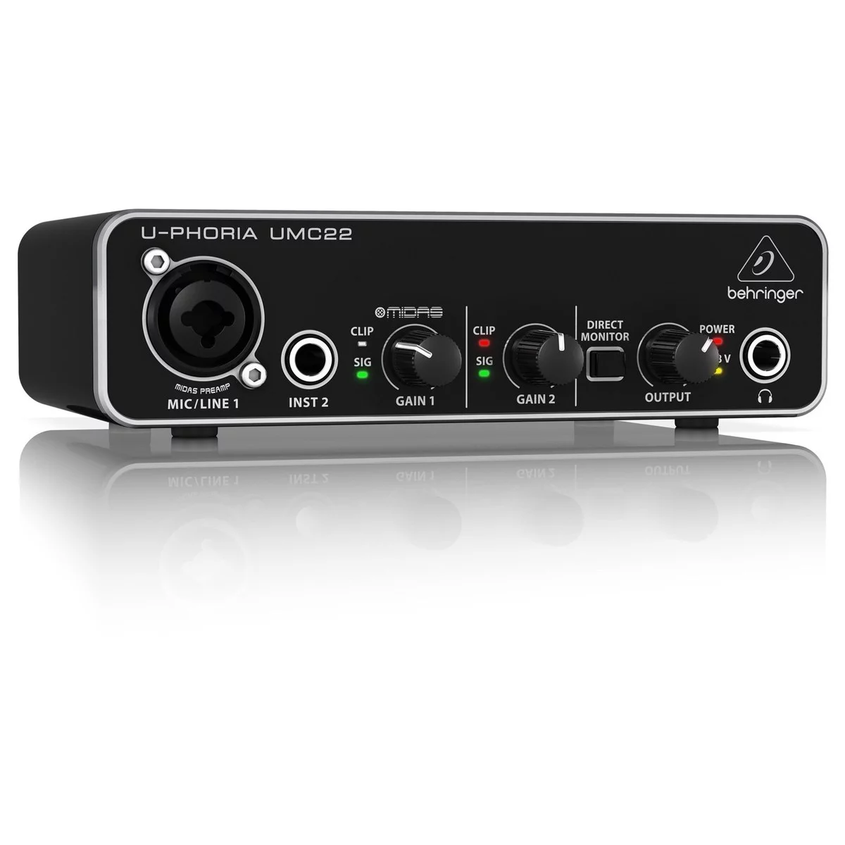 В U-PHORIA UMC22 установлен USB-интерфейс, обеспечивающий передачу сигнала по двум входным или выходным каналам. Кроме того, USB-подключение обеспечивает питание устройства. U-PHORIA UMC22 совместим с компьютерами с операционными системами Windows и Mac OS, причём для работы ему необходимы устанавливаемые в комплекте со многими аудиоредакторами драйвера ASIO, либо же интегрированные в Mac OS драйвера Core Audio.